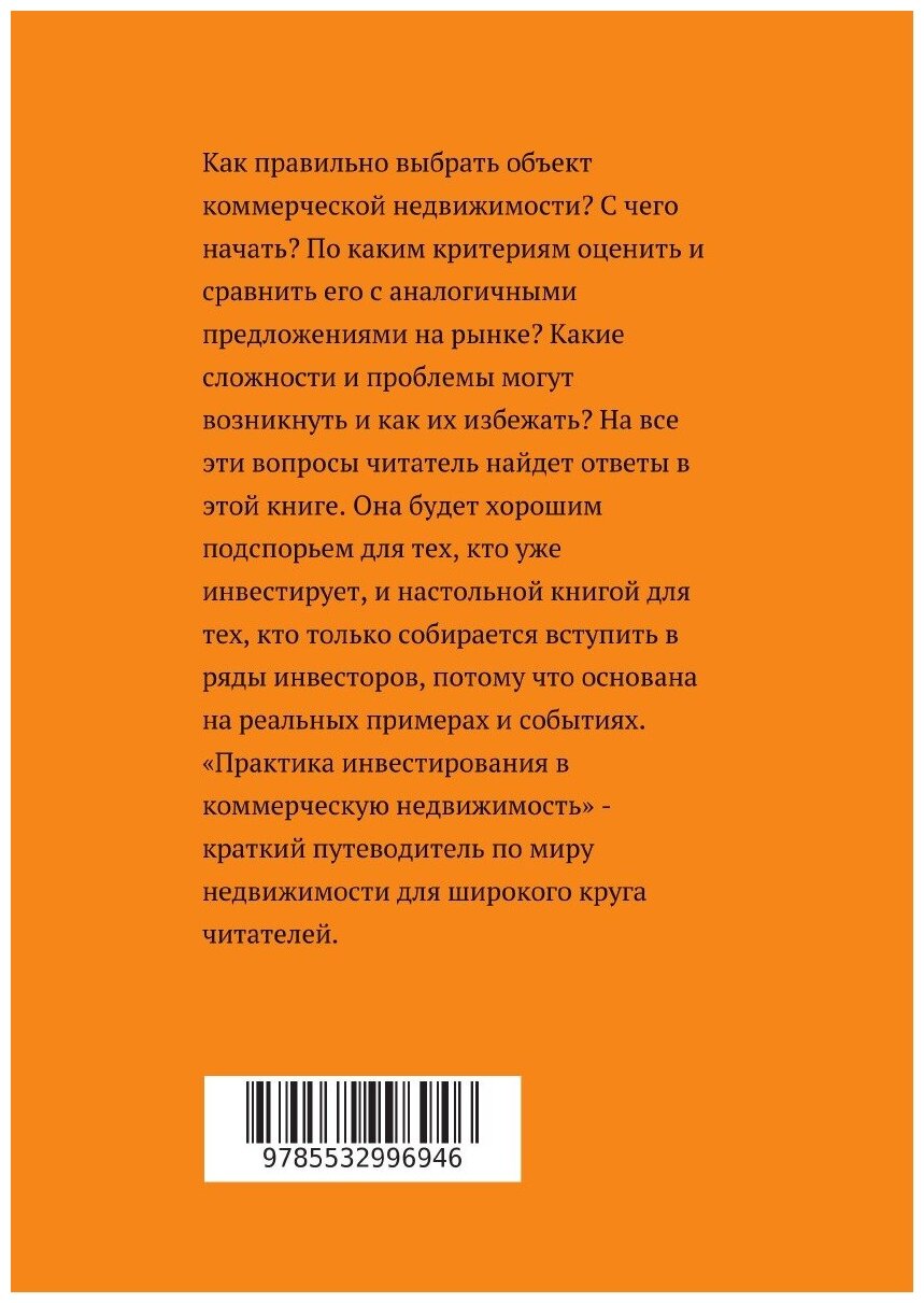 Как правильно выбрать объект коммерческой недвижимости? С чего начать? По каким критериям оценить и сравнить его с аналогичными предложениями на рынке? Какие сложности и проблемы могут возникнуть и как их избежать? На все эти вопросы читатель найдет ответы в этой книге. Она будет хорошим подспорьем для тех, кто уже инвестирует, и настольной книгой для тех, кто только собирается вступить в ряды инвесторов, потому что основана на реальных примерах и событиях. «Практика инвестирования в коммерческую недвижимость» – краткий путеводитель по миру недвижимости для широкого круга читателей.