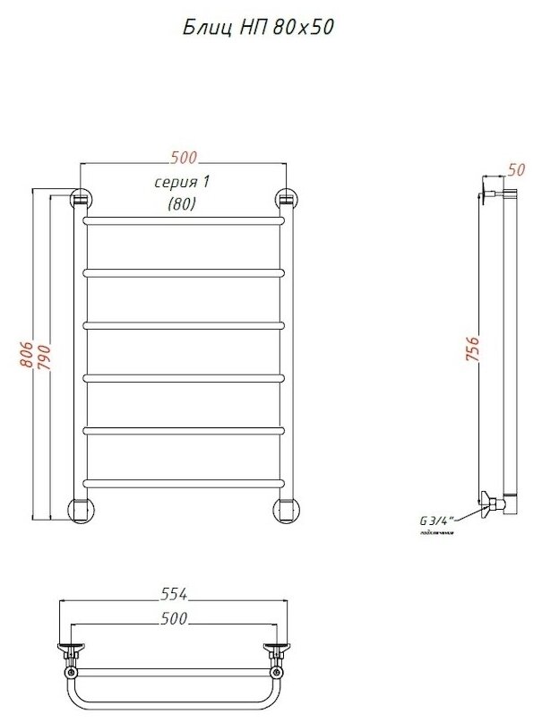 Полотенцесушитель Тругор Блиц НП 80*50 (ЛЦ21) (Блиц/нп8050)