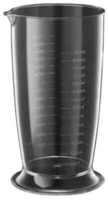 Погружные части прибора изготовлены из нержавеющей стали, что повышает износостойкость блендера. Корпус пластиковый. Емкость мерного стакана составляет 700 мл. Кроме этого, устройство имеет такие дополнительные свойства: