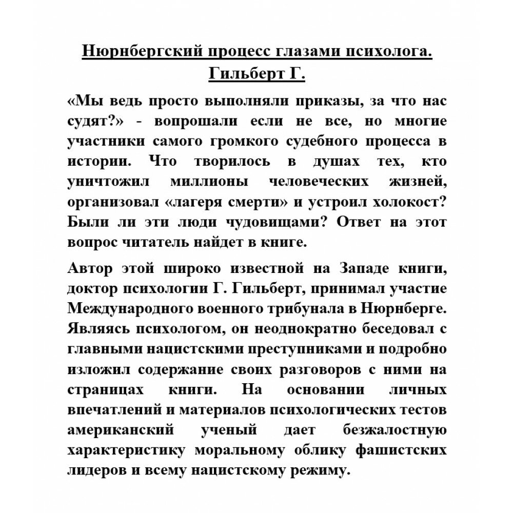 Сервис сравнения цен СкидкаГИД предлагает сравнить цены на товар «Книга: Нюрнбергский процесс глазами психолога (Гюстав Гильберт); Алисторус, 1947»