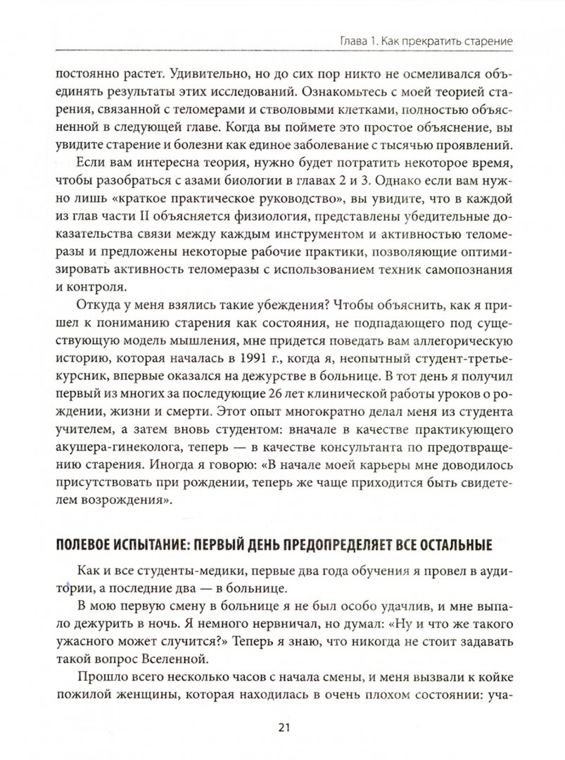 На страницах этой книги доктор Парк живым языком рассказывает о новейших научных открытиях, приводя иллюстрации и метафоры, которые будут понятны каждому. Он также демонстрирует, как можно вмешаться в процесс старения с помощью различных практик и техник, заметно повышающих активность фермента теломераза - внутреннего источника молодости, работающего на клеточном уровне.