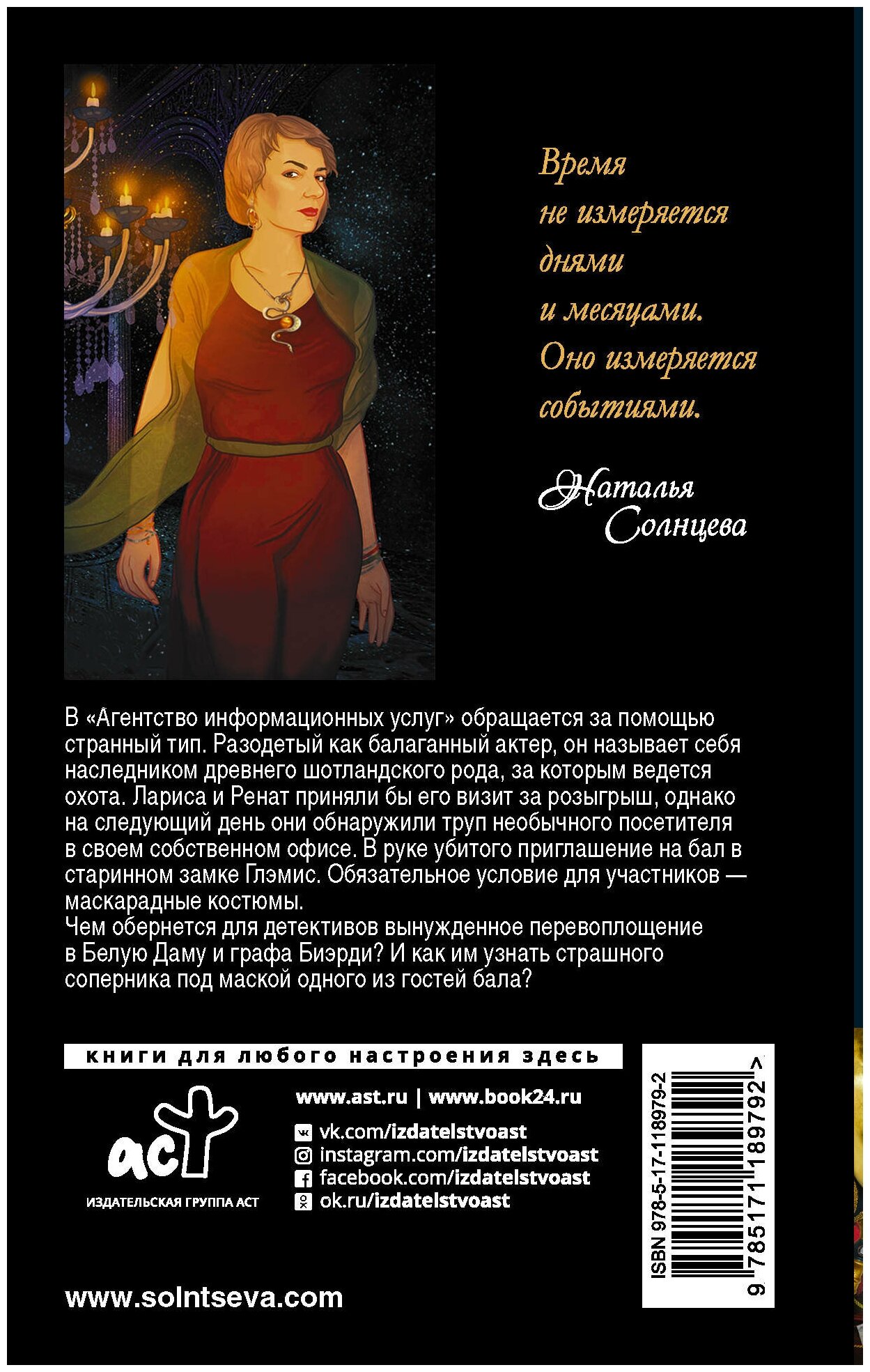В «Агентство информационных услуг» обращается за помощью странный тип. Разодетый как балаганный актер, он называет себя наследником древнего шотландского рода, за которым ведется охота. Лариса и Ренат приняли бы его визит за розыгрыш, однако на следующий день они обнаружили труп необычного посетителя в своем собственном офисе. В руке убитого приглашение на бал в старинном замке Глэмис. Обязательное условие для участников – маскарадные костюмы. Чем обернется для детективов вынужденное перевоплощение в Белую Даму и графа Биэрди? И как им узнать страшного соперника под маской одного из гостей бала?