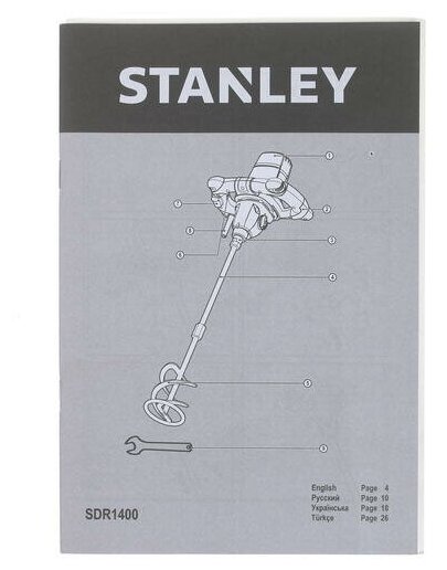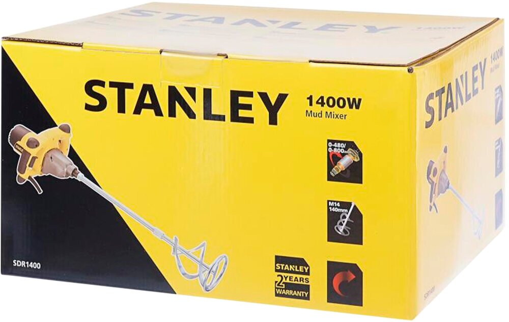 | Прочие особенности и свойства | Мощный двигатель и высокий крутящий момент - для большей производительности; Двойная рукоять - для комфортного и надежного захвата строительного миксера Stanley SDR1400 при работе; Для работ с материалами различной плотности миксер оснащен регулировкой скорости; Плавный пуск - для комфортного начала работы. |