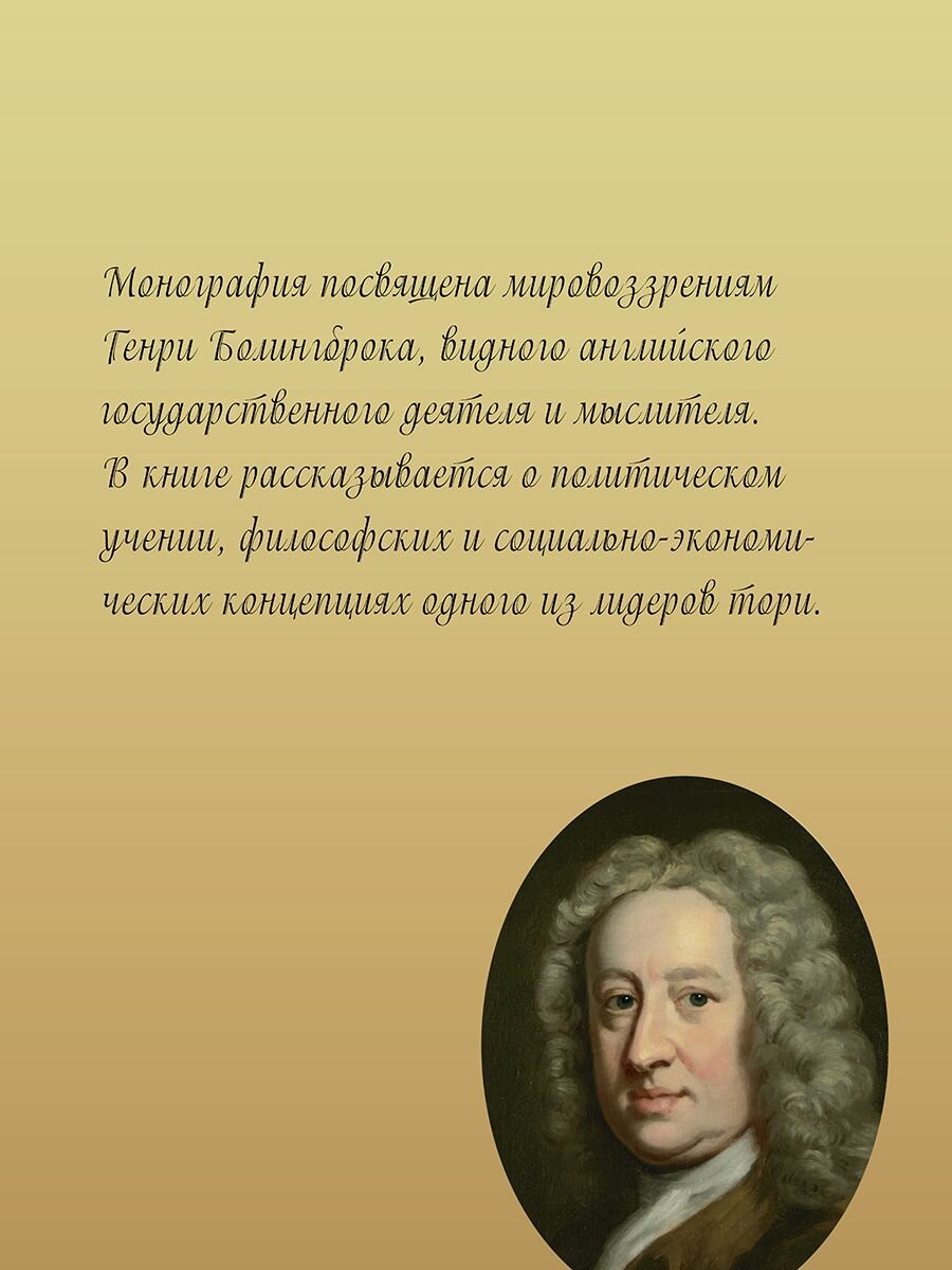 Монография посвящена мировоззрениям Генри Болингброка, видного английского государственного деятеля и мыслителя. В книге рассказывается о политическом учении, философских и социально-экономических концепциях одного из лидеров тори.
