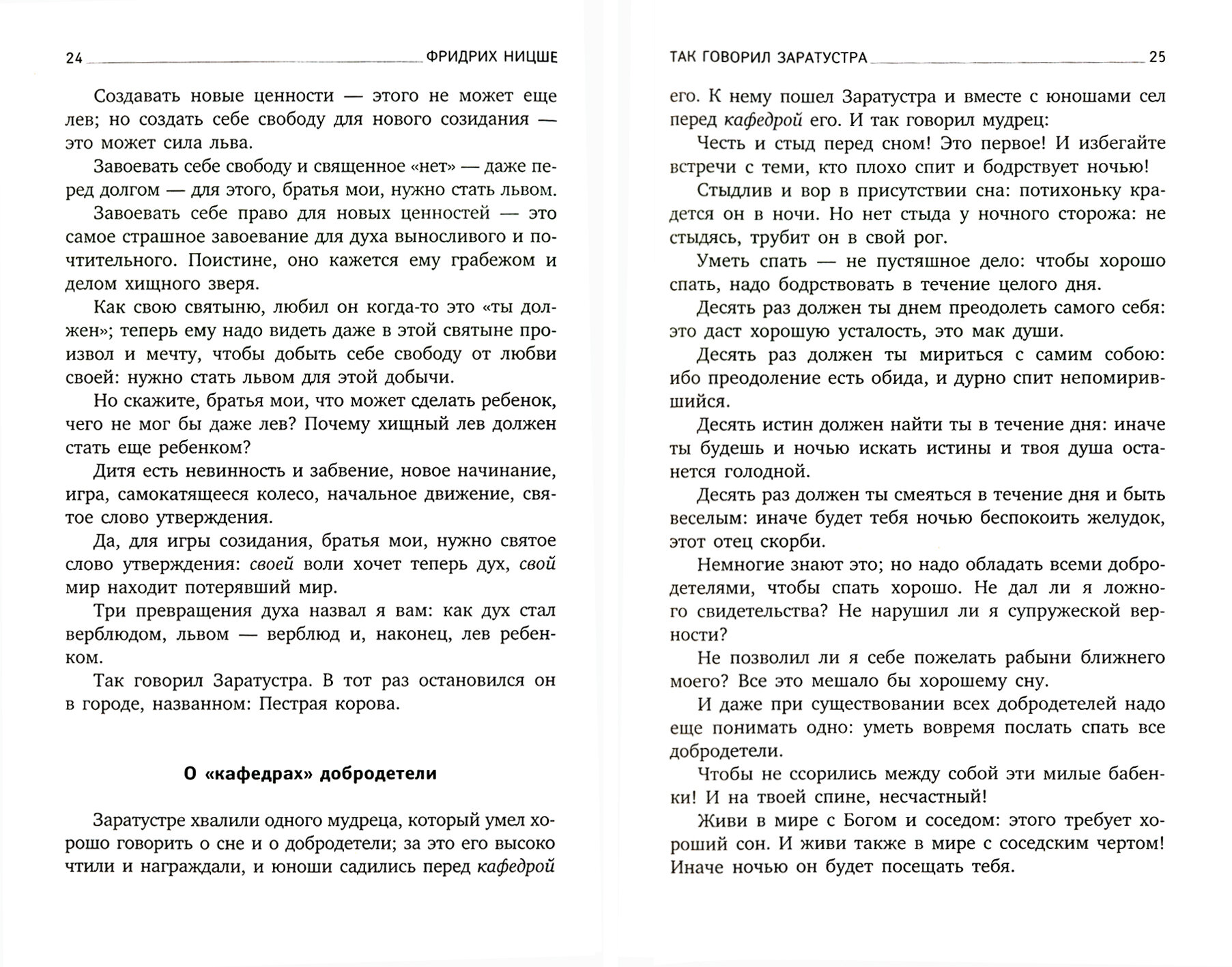 Изысканный философский роман, удивляющий метафоричным и при этом точным языком и глубиной своих откровений! на каждой странице! "Заратустра" — одна из лучших книг Ницше и одна из любимых для меня. В радость было перечитать ее в этом отличном издании, компактном и крепком: страницы плотные, шрифт четкий и средний, книга долговечна, как и ее содержание! Формат стандартный для покетбука, идеально для того, чтобы держать книжку всегда при себе.