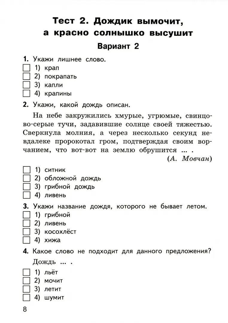 2 класс-Русский язык-«Итоговый тест по русскому языку за 2 класс»-14.05.2020г.