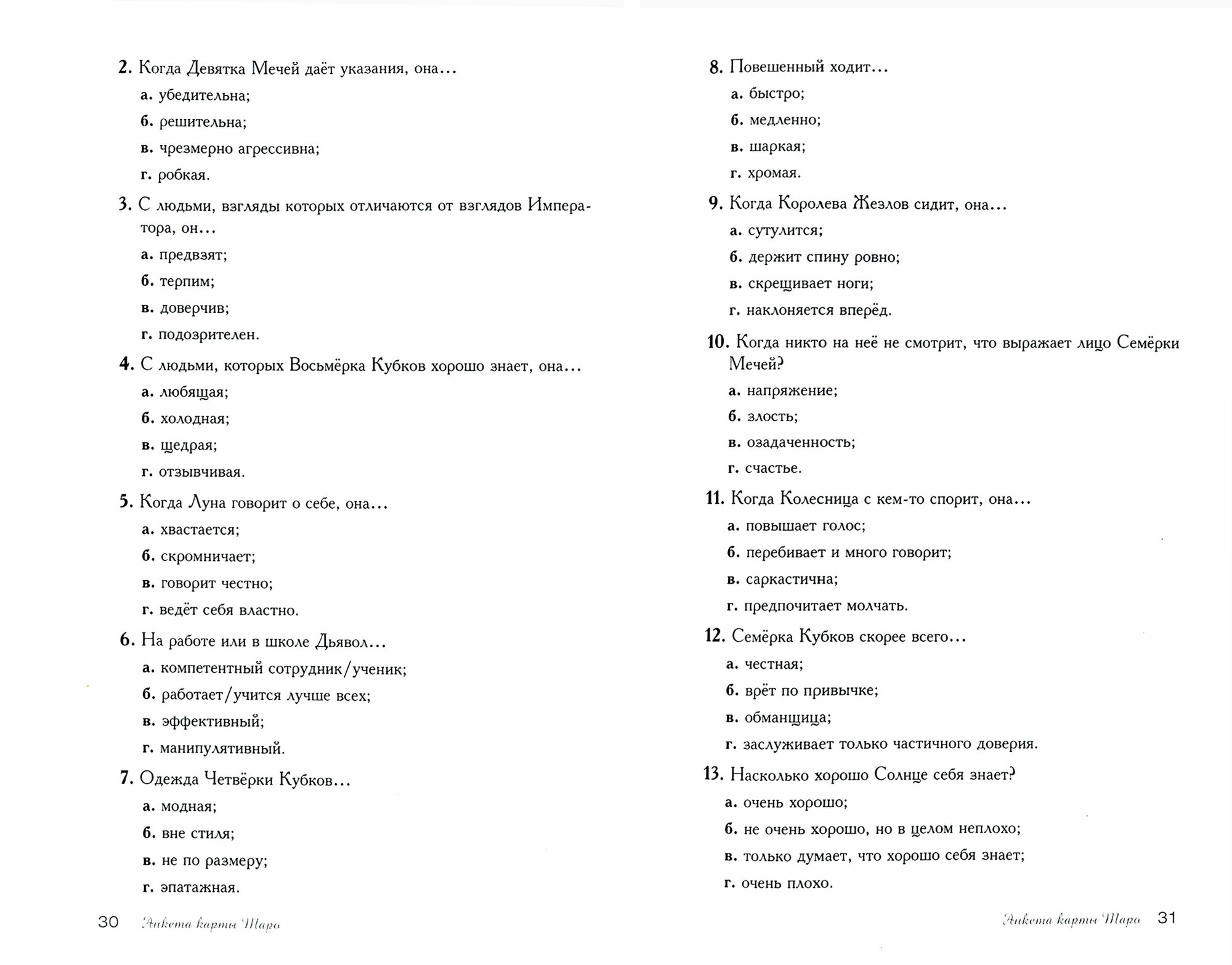 Это однозначно что-то новенькое от Аввалон ло скарабео и очень любопытное! Это изучение арканов в игровой форме, приведено много авторских необычных заданий, которые помогают расширить понимание уже знакомых карт, развить интуицию и понимание карт на уровне ощущений, развивает воображение. Давно я так не радовалась книге о таро! Действительно удивили, спасибо!)