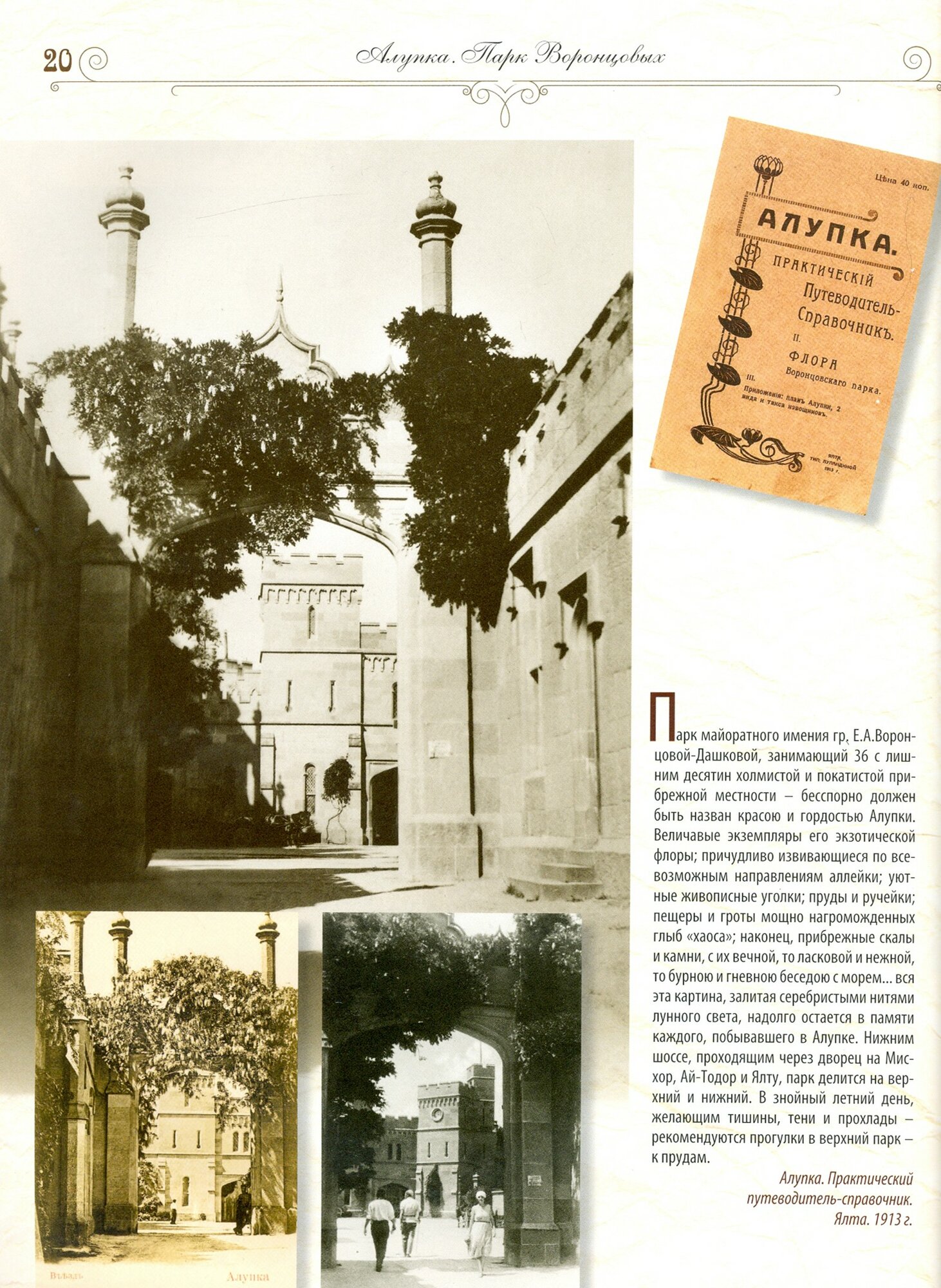 Альбом «Алупка. Парк Воронцовых» является своеобразным путеводителем по Алупкинскому парку и дворцу середины XIX – начала XX века. Издани содержит более 400 открыток и фотографий, многочисленные выдержки из путеводителей, которые позволят читателю совершить увлекательное путешествие в прошлое Алупки.