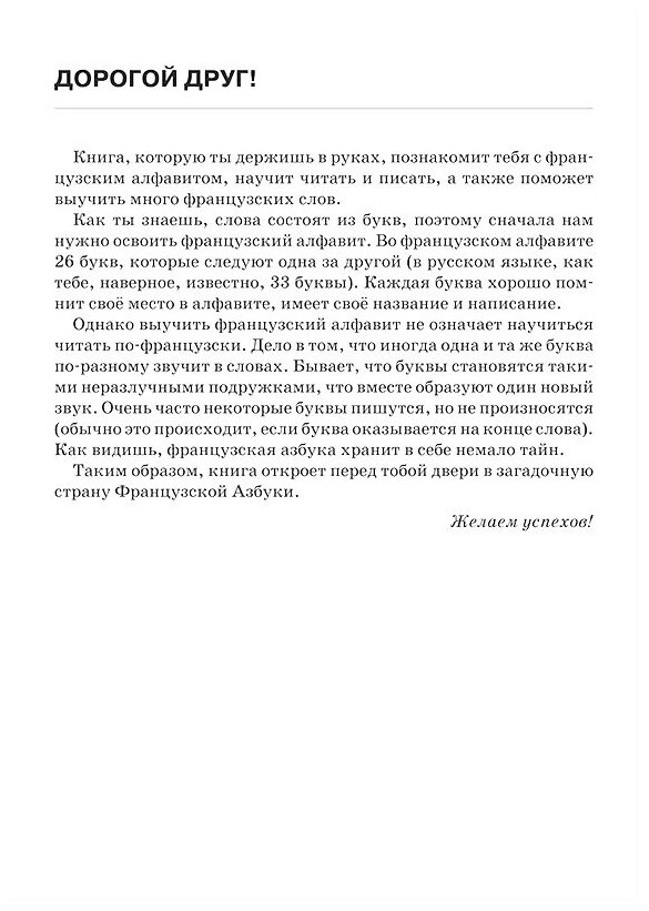 Предлагаемое вниманию педагогов и родителей учебное пособие рассчитано на детей самого младшего школьного и дошкольного возраста. Цель книги заключается в обучении детей французской азбуке и элементарным правилам чтения.