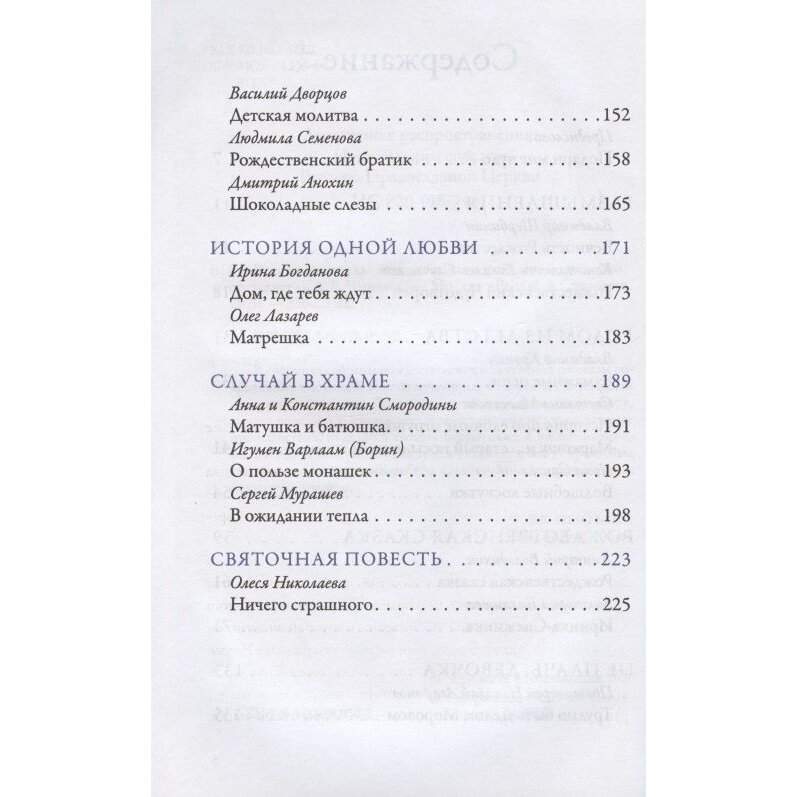 В сборнике собраны рождественские и святочные рассказы современных писателей, среди которых – лауреаты Патриаршей литературной премии. Продолжая лучшие традиции этого жанра, авторы поведают удивительные рождественские истории, расскажут о веселых происшествиях, поделятся своими открытиями и воспоминаниями. Вас ждут самые настоящие чудеса – такие, что могут произойти с каждым из нас. Многие произведения печатаются впервые.