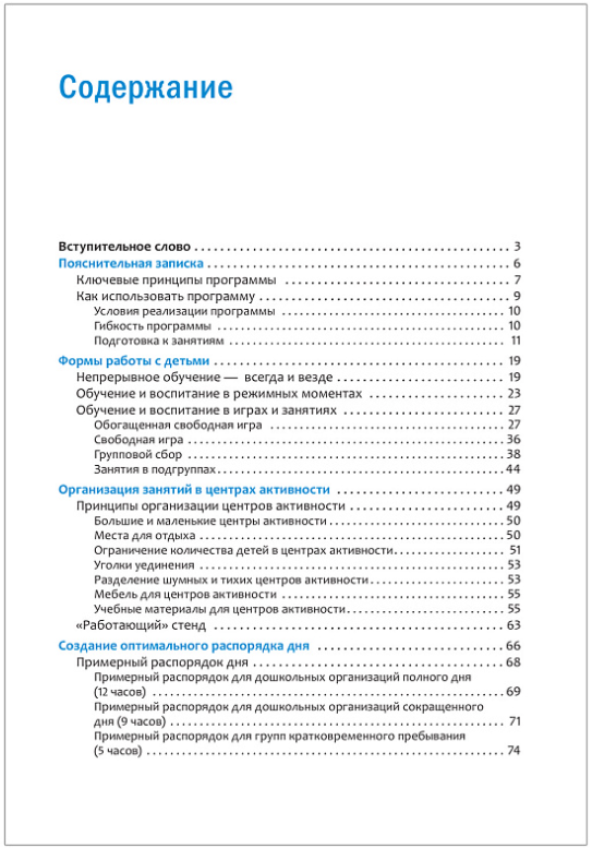 В книге представлена методика работы с детьми, даны советы по наполнению центров активности и обогащению свободной игры, а также примерный распорядок дня для групп с разной продолжительностью пребывания детей.