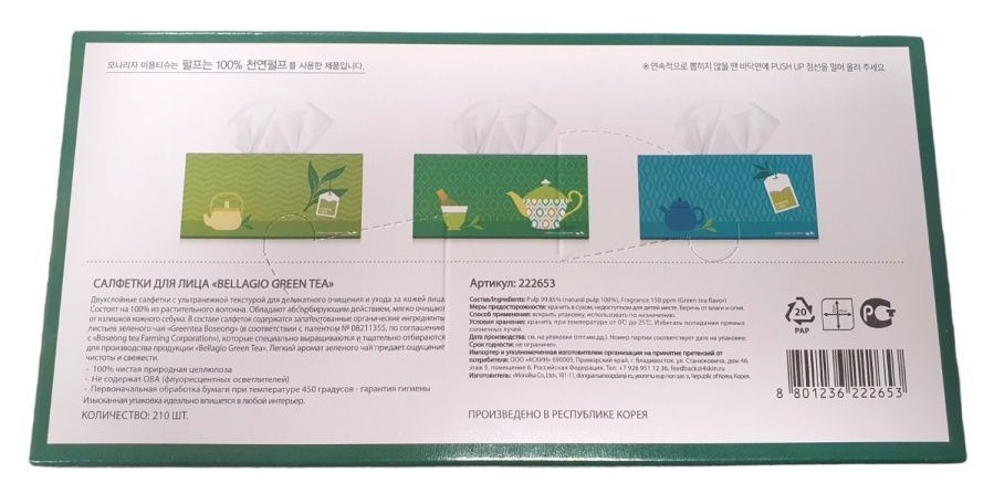 На сегодняшний день товар «Салфетки для лица "Bellagio Green tea" 210 шт. Monalisa Co., Ltd (1303674)» можно купить с кешбеком в 2 магазинах: delikateska, Яндекс.Маркет