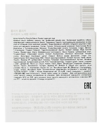 | Полное наименование | Holika Holika Holika Holika Puri Pore No Sebum Powder |