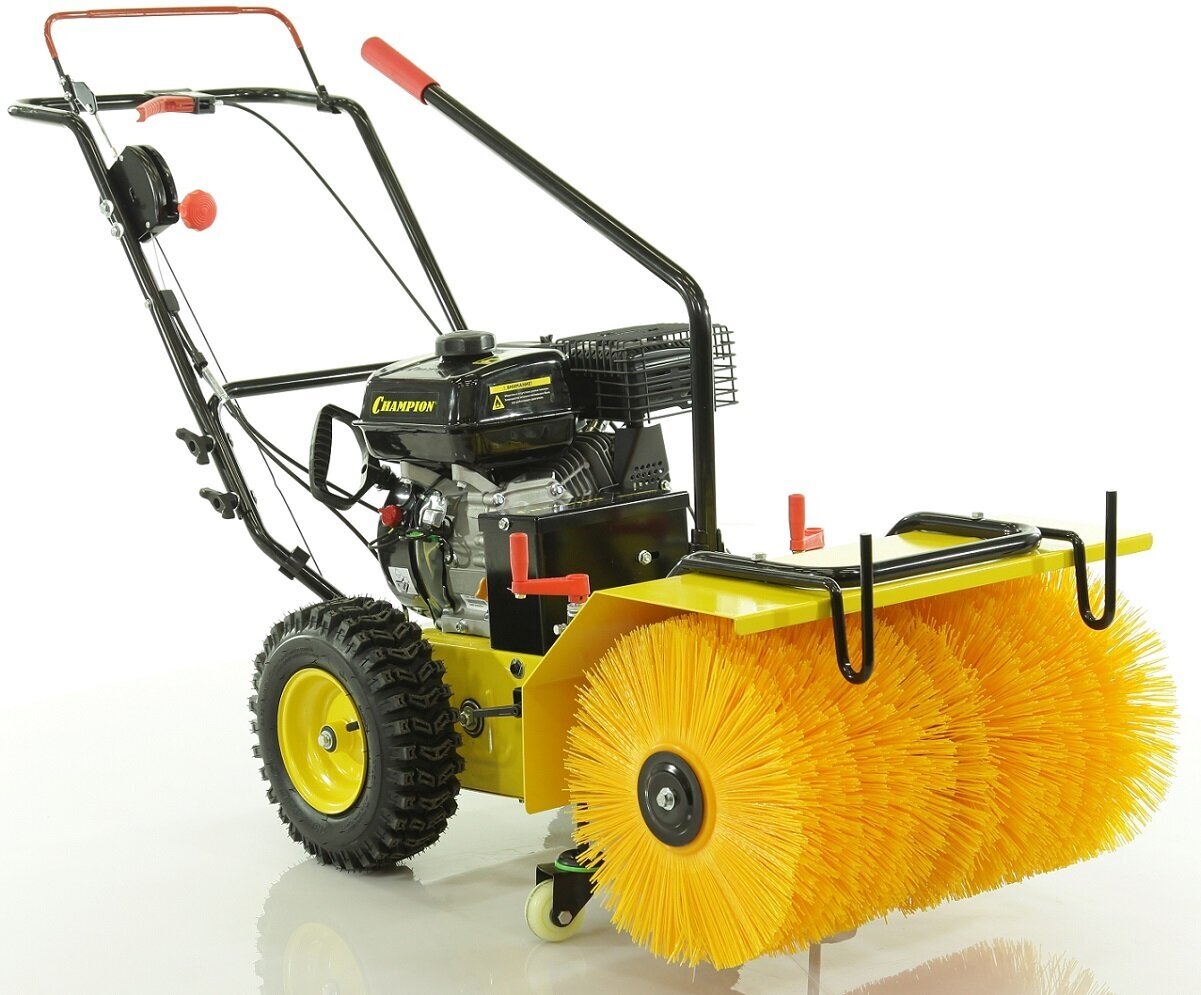 Подметально-уборочная машина Champion используется для уборки территории от пыли, опавших листьев, снега и прочего мусора. Она имеет надежный 4-х тактный бензиновый двигатель с воздушным охлаждением и верхним расположением клапанов. Возможность установки контейнера для мусора, снежного отвала-лопаты и роторного снегоуборщика значительно расширяет область применения машины. Угол поворота щетки составляет 190 градусов.