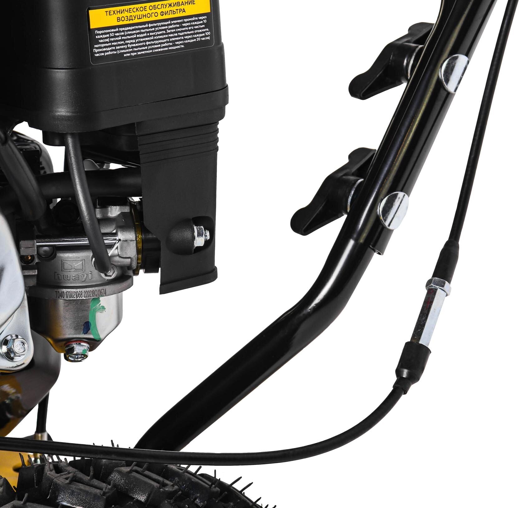 | Особенности | возможно использование навесного оборудования (отвал или мусоросборник), несколько скоростей движения3 вперед + 1 назад, угол поворота щетки 190° при помощи перемещения рычага в левую и правую сторону, 2 основных ведущих колеса диаметром 13 дюймов + 2 небольших промежуточных колеса для большей устойчивости |