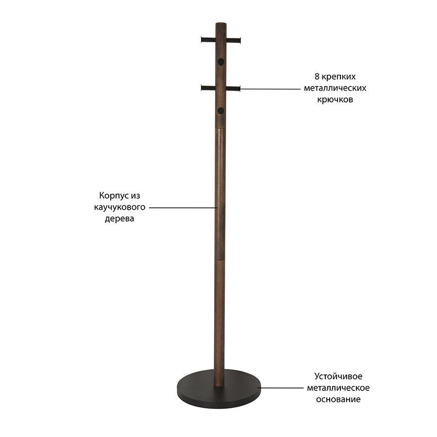 Вертикальная вешалка имеет 6 прочных крючков для одежды. Изделие на 85% выполнено из натурального дерева.