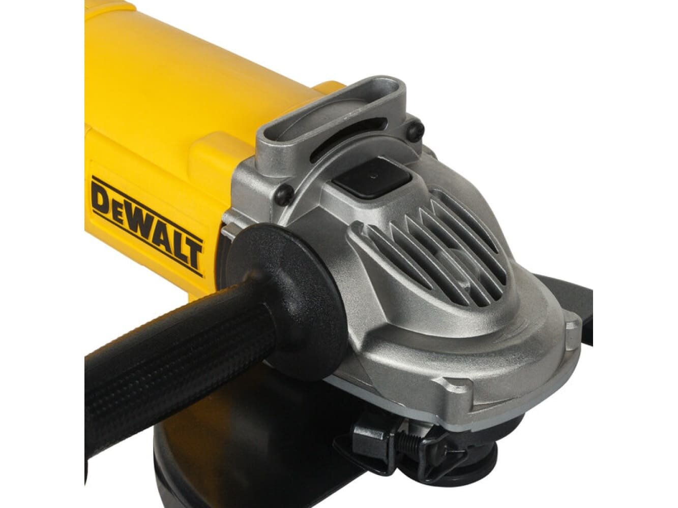 DeWALT – углошлифовальная машина, которой особенно удобно работать благодаря двухпозиционной боковой рукоятке. Пользователь может поставить ее так, как посчитает нужным. В этой модели установлен мощный электродвигатель, обеспечивающий высокую производительность. Эффективная система пылеудаления надежно защищает его от перегрева и помогает продлить срок его эксплуатации. Шпиндель при необходимости легко блокируется, что позволяет быстро и безопасно выполнять замену диска.