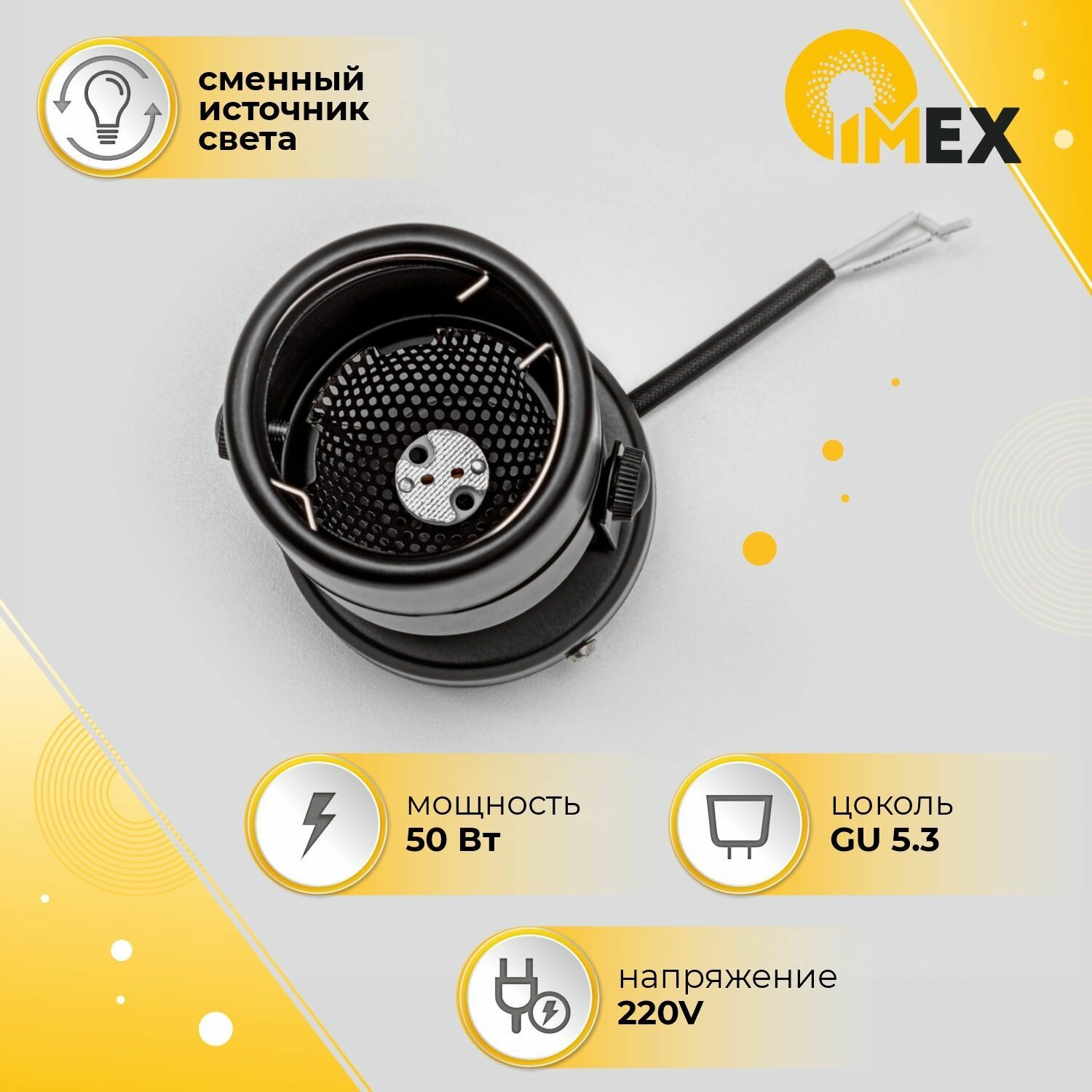 Спот – товар от немецкой компании Imex. Рассчитан на размещение в кафе, магазине, предпочтительный стиль дизайна – современный. Примерная площадь освещения 4 кв. м при максимальной мощности в 50 Вт. Основной материал изготовления – металл черного цвета. Абажур выполнен в черном цвете. Цоколь – GU5.3, максимальная мощность лампочки – 50 Вт. Лучшая цена и быстрая доставка спота в интернет-магазине Люстрон!