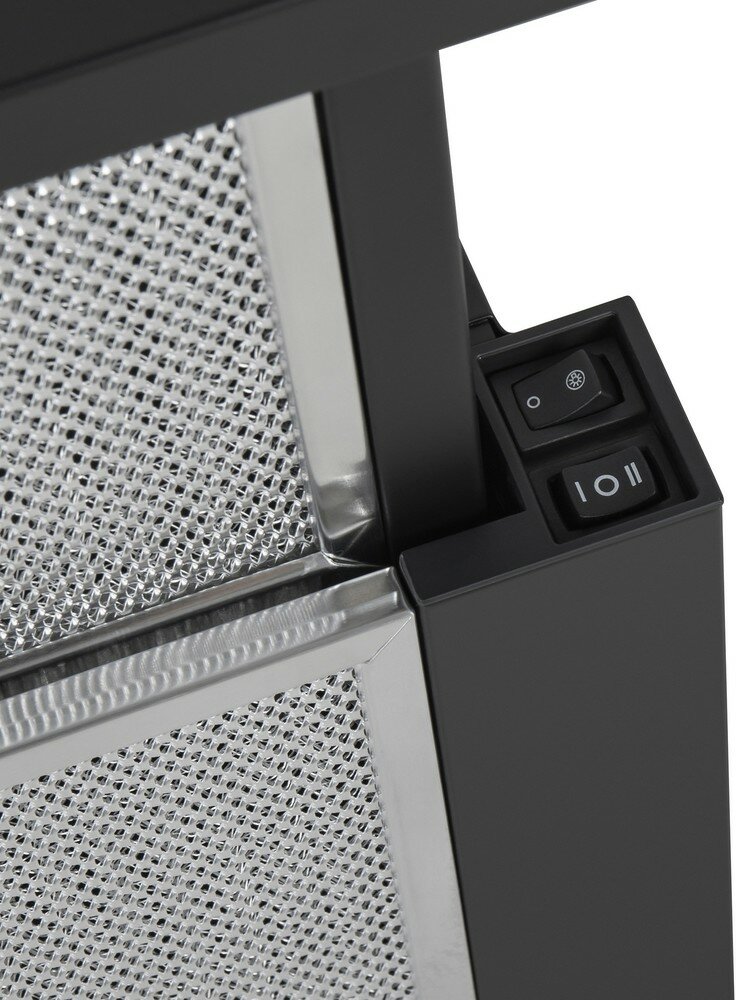 Дизайн Встраиваемая вытяжка из высококлассной стали, встраивается в шкаф над поверхностью плиты. Компактная, она идеально подойдет для стандартных кухонь не больших размеров (до 12 кв.м), благодаря выдвижному козырьку она эффективно собирает загрязненный воздух над плитой. Дизайн великолепно впишется в любой кухонный интерьер и благодаря высокому качеству материалов прослужит десятилетия. Современный функционал Вытяжка оснащена колыбельным управлением 2-мя скоростями.