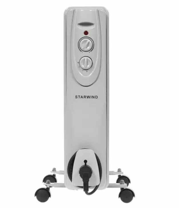 Радиатор масляный Starwind способен согреть и сделать комфортной температуру в комнате до 25 кв. м. 11 радиаторных секций с успехом справляются со своей непосредственной задачей – обогревом жилого помещения.