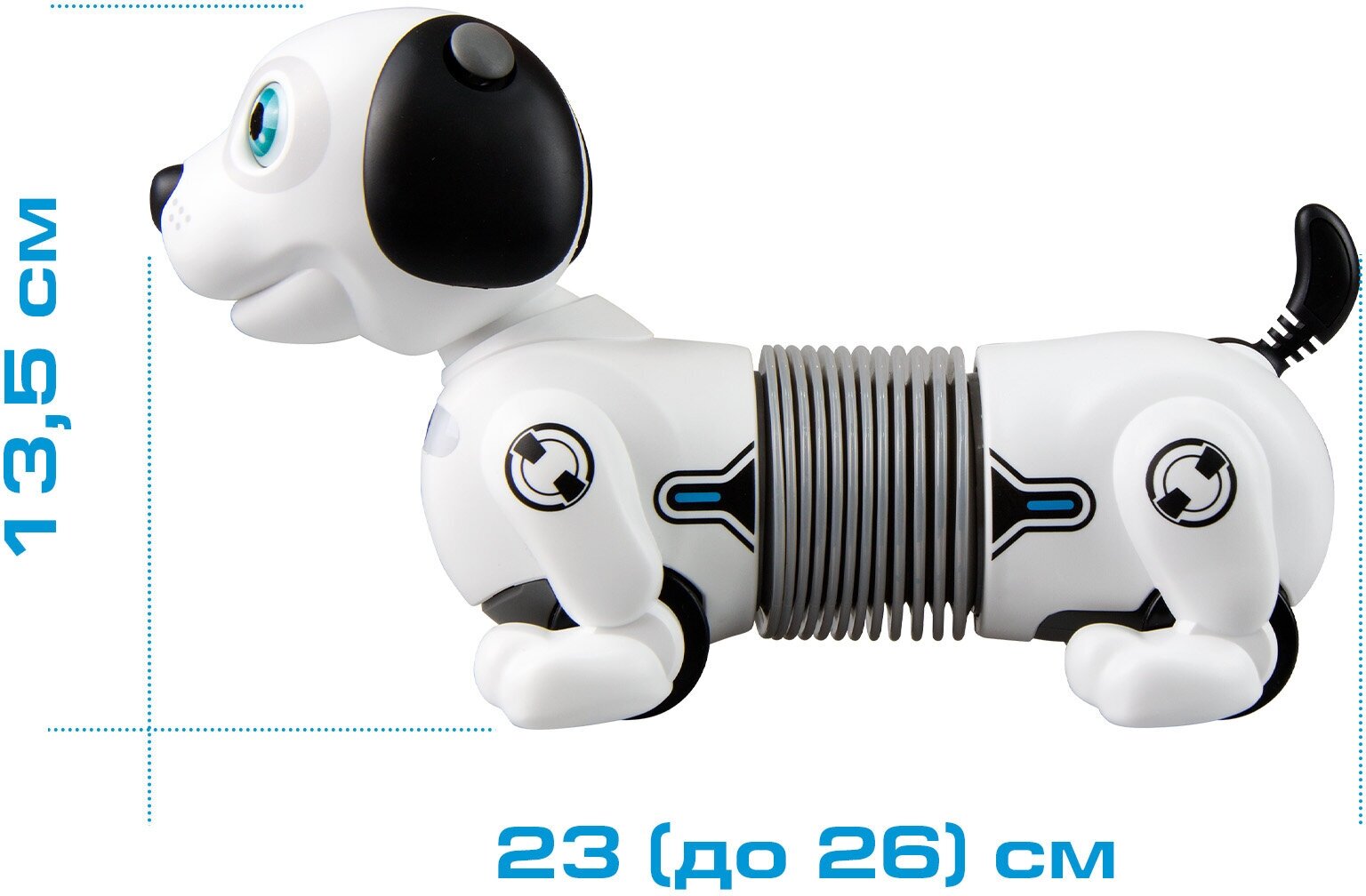 Собака робот Дэкел Джуниор, Silverlit, 88578. С этим забавным щенком не надо гулять 3 раза в день, поэтому он является идеальным питомцем. А еще робот с удлиняемым телом и смешной мордашкой очень любит играть с мячиком и реагирует на поглаживания от своего хозяина. Особенности: - Робот, напоминающий очаровательную собачку, управляется жестами, он умеет следовать за ребенком или мячиком. - Кибер-щенок реагирует на прикосновения и очень смешно выглядит, когда его тело удлиняется на 70 %. - Робот забавно двигается, а еще он играет с мячиком и бегает за ним. - Играя с дроидом, дети проявляют фантазию и поднимают себе настроение, а также весело бегают вместе с ним. - Игрушка не теряют со временем форму и яркость благодаря прочному пластику высокого качества и стойким красителям.