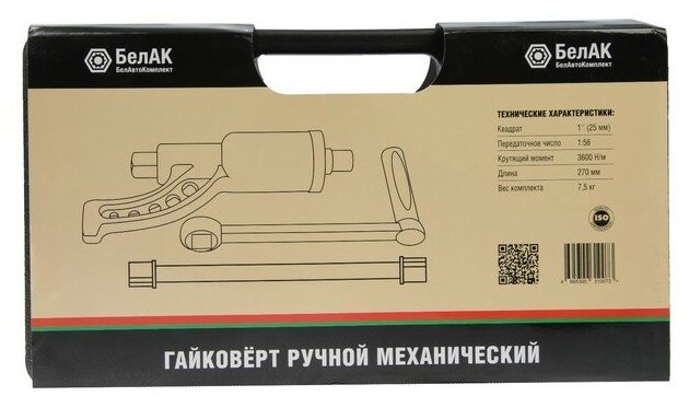 Механический гайковёрт «БелАК» предназначен для монтажа и демонтажа резьбовых соединений при проведении различных работ в промышленности и автосервисеПреимущества Гайковерт механический ручной "БелАК" выполнен из высокопрочных материалов, отличается повышенной надежностью и продолжительным сроком службы Усиление крутящего момента осуществляется за счет планетарного трёхступенчатого редуктора Фирменный логотип на корпусе, выполненный на этапе отливки, защищает от подделок и является гарантом оригинальности изделия Передаточное число: 1:56, то есть приложенное усилие будет увеличено в 56 раз Гайковерт обладает светоотражающим пыльником, который защищает от попадания грязевых частиц в механизм редуктора гайковерта В механизме редуктора гайковерта использованы подшипники, а не втулки скольжения, как у аналогов В комплект входит надежный морозостойкий и ударопрочный кейс, который обеспечит удобное и безопасное хранение инструмента
