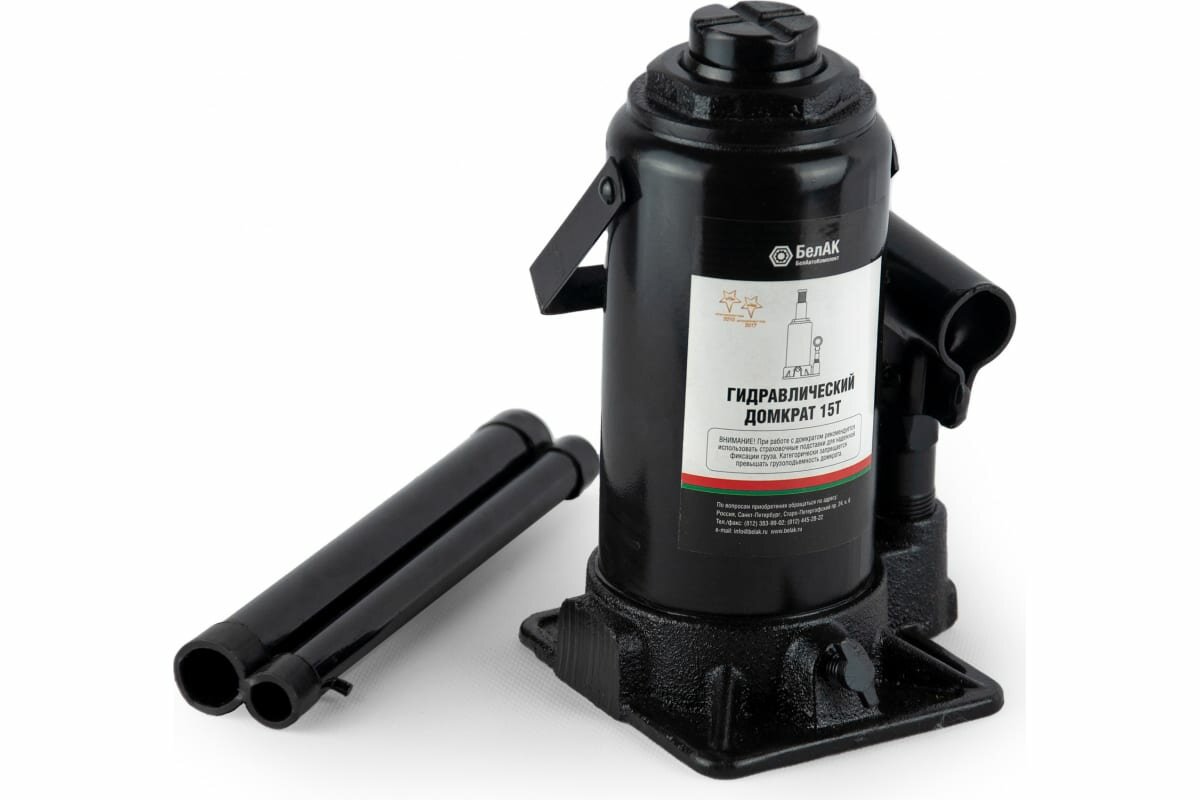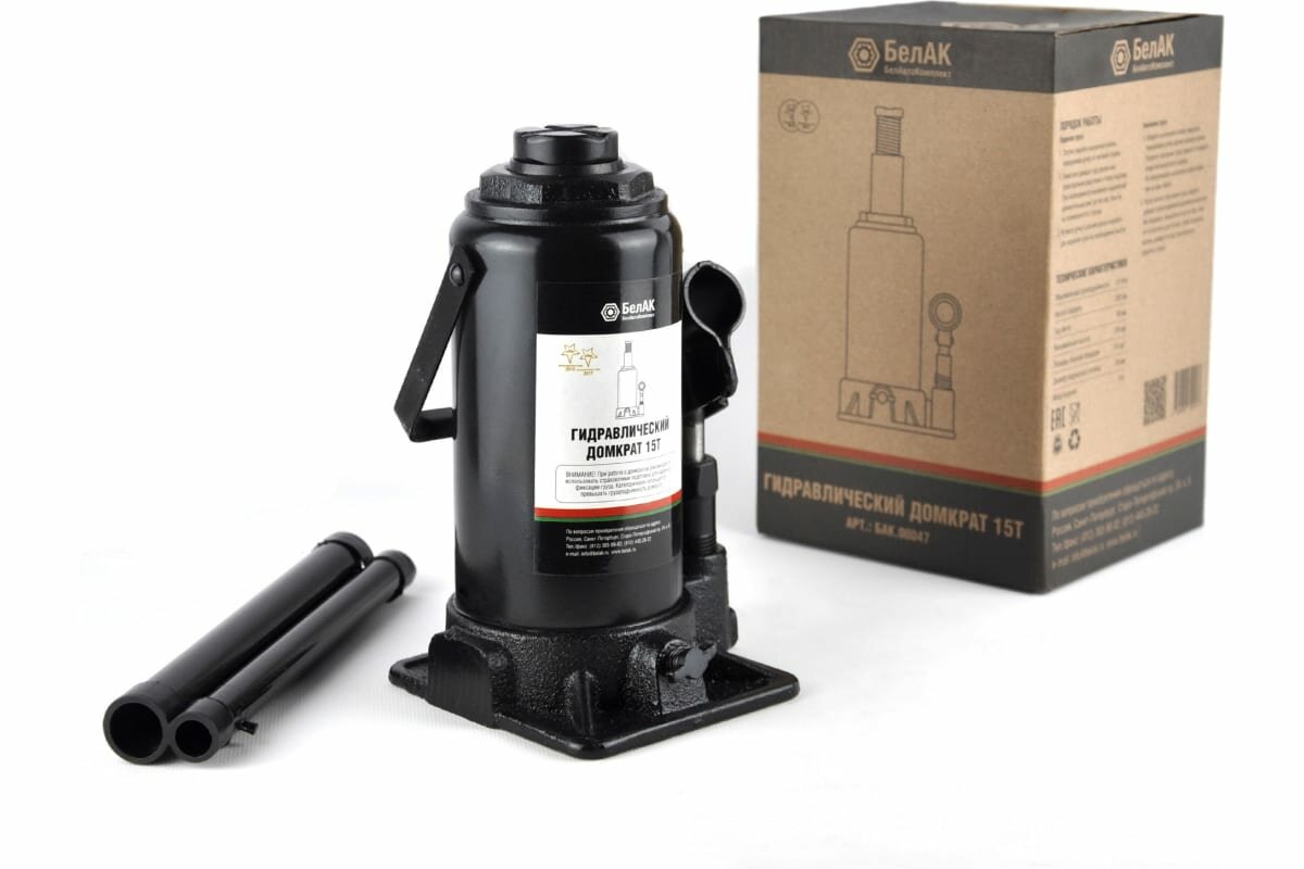 Домкрат гидравлический бутылочный 15 тонн "БелАК" идеально подойдет для ремонтно-монтажных работ с автомобилем, строительства и подъема строений, а также как силовой узел более сложных станков и механизмов.
