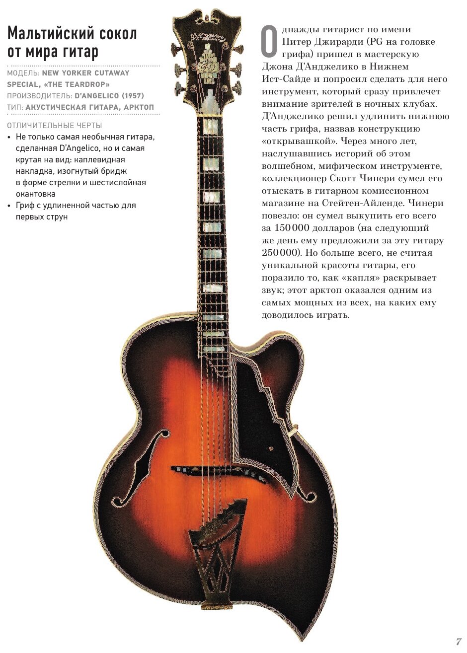 На протяжении многих веков гитара считается неиссякаемым источником вдохновения. Дэвид Шиллер предлагает убедиться в этом, мастерски собирая воедино двести моделей струнных орудий, от Red Special Брайана Мэя до Chrystasalis Тима Уайта. Автор поистине влюблен в инструмент: с восторженным увлечением и вниманием к деталям он рассказывает как о моделях инструментов, так и о культовых музыкантах, которые играли на них. Читать такую книгу – целое визуальное удовольствие из-за мастерски подобранных иллюстраций и манеры письма автора.