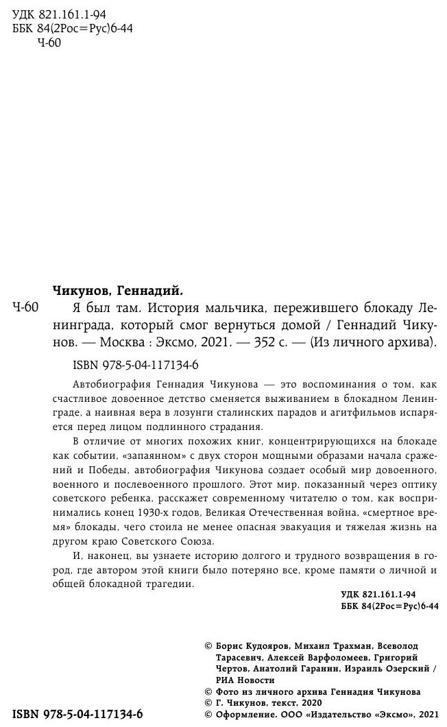 Я был там. История мальчика пережившего блокаду Воспоминания простого человека о непростом времени (Геннадий Чикунов); Эксмо, 2020