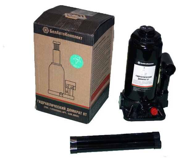 Домкрат 8 тонн (TUV, 2 клапана) разработан российским производителем «БелАК», награждённым двумя национальными премиями «Автокомпонент года» и «Автоаксессуар года» за высокое качество и надежность выпускаемых домкратов. Продукция «БелАК» соответствуют нормам сертификации ISO9001 и ЕАС.