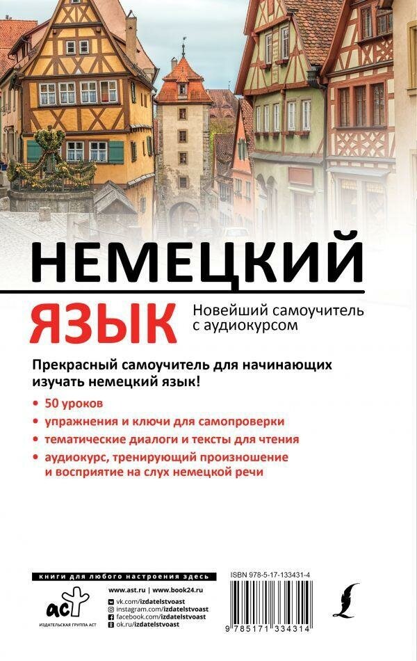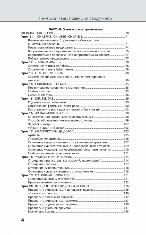 Настоящий самоучитель содержит 50 уроков, в которых последовательно представлены ключевые темы грамматики и лексики немецкого языка, а также упражнения для закрепления пройденного материала. Большое внимание в книге уделяется современному разговорному языку, культуре Германии и особенностям коммуникации.