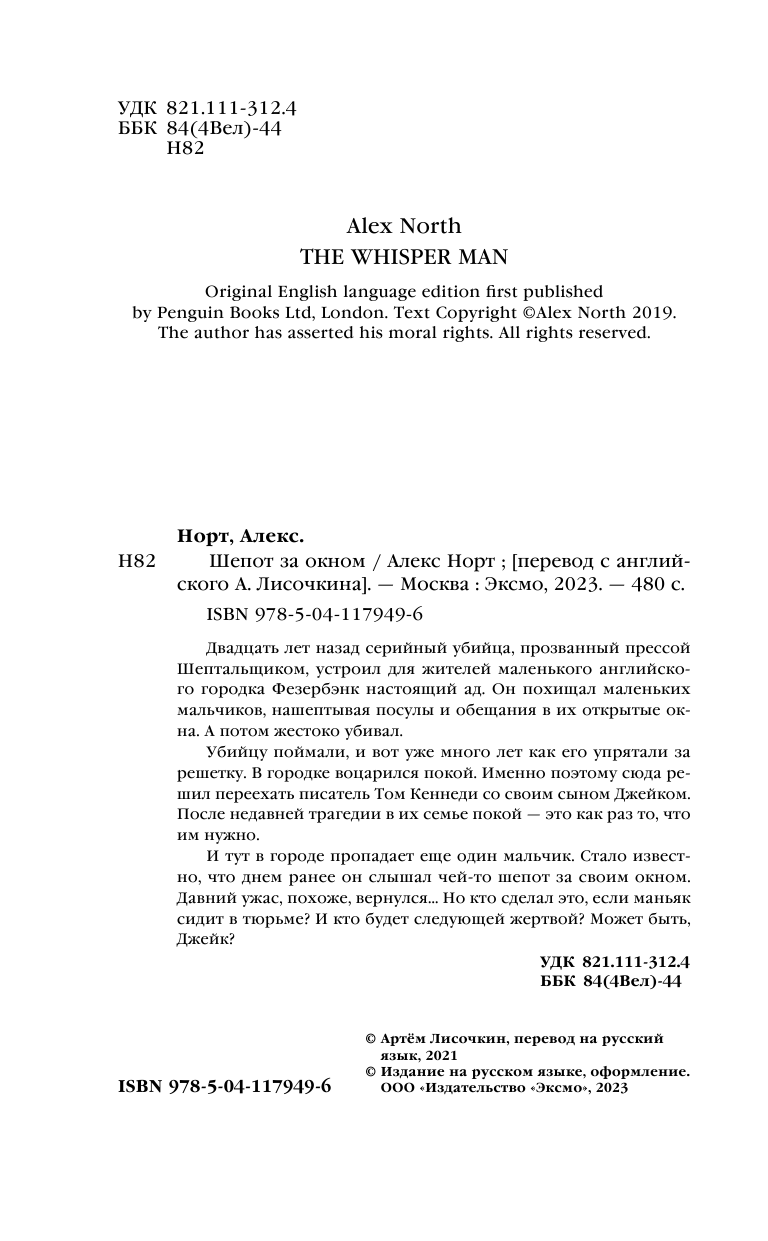 Книга: Шепот за окном (Алекс Норт); Эксмо, Редакция 1, 2023