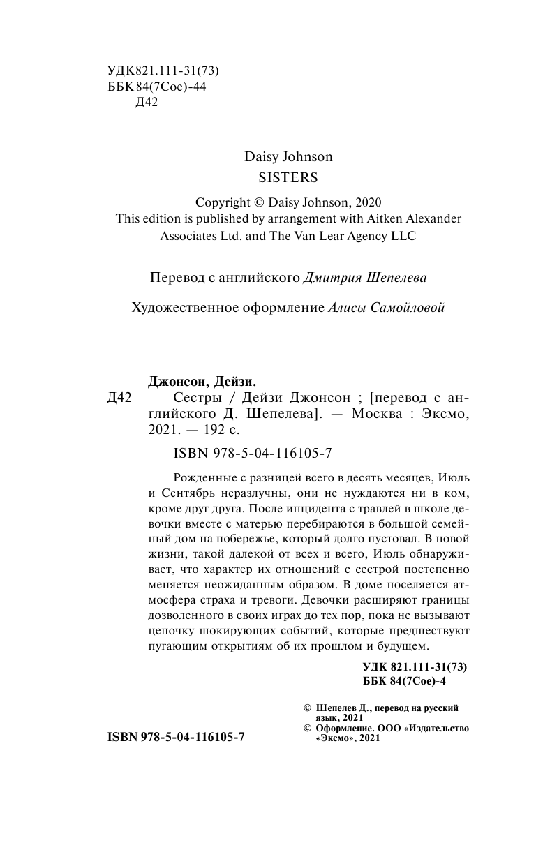 Книга: Сестры (Дэйзи Джонсон); Эксмо, Редакция 1, 2021