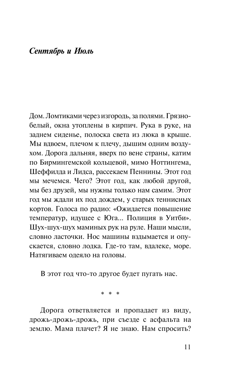 Странная, горькая, захватывающе-интересная книга о двух сестрах, настолько непохожих одна на другую, насколько вообще могут быть разными два человека. Харизматичная властная Сентябрь и ведомая робкая Июнь, полностью под ее влиянием. До тех пор, пока не понимаешь подлинной расстановки приоритетов в этой паре,может казаться, что сильная Сентябрь защищает хрупкую сестренку и заботится о ней. На деле все не так просто.