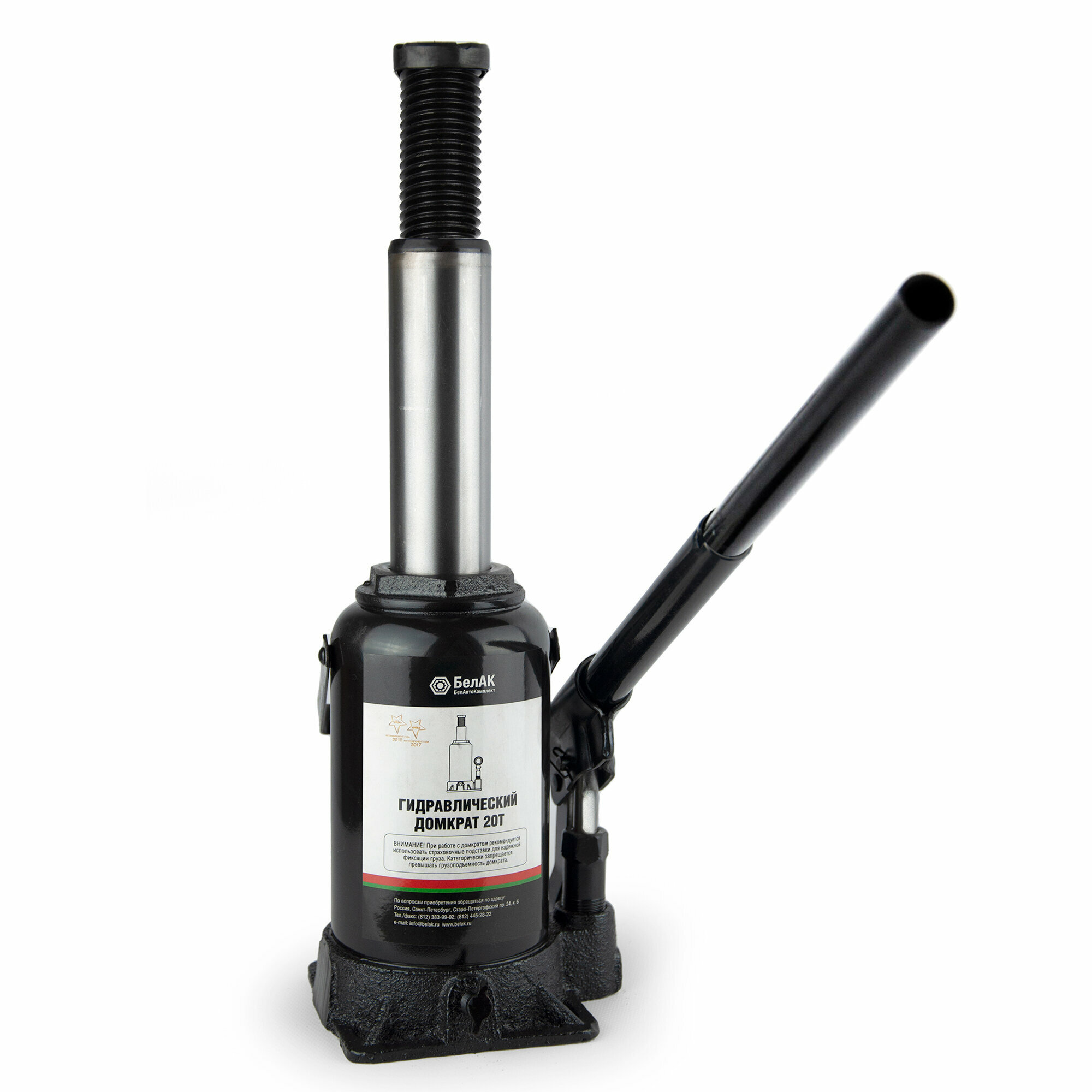 Домкрат гидравлический бутылочный 20 тонн производства компании БелАК предназначен для безопасного и удобного подъема автотранспортных средств и всевозможных грузов. Идеально подойдет для ремонтно-монтажных работ с автомобилем, строительства и подъема строений, а также как силовой узел более сложных станков и механизмов.Преимущества Двойная электрохимическая полировка гарантирует идеальную защиту штока домкрата от коррозийного налета, и полностью устраняет неровности, которые могут повредить уплотнительные манжеты Деликатная двойная покраска корпуса домкрата надежно защищает его от механических повреждений, и значительно продлевает срок службы Электрохимическая обработка клапана домкрата исключает возникновение коррозии Специальное гидравлическое масло работает в широком диапазоне температур (+/- 50 °C) Плавность хода и торможения штока Большой диаметр подхватного пятачка: 40 мм Компактные размеры и небольшой вес Удобство транспортировки Не требует специального обслуживания