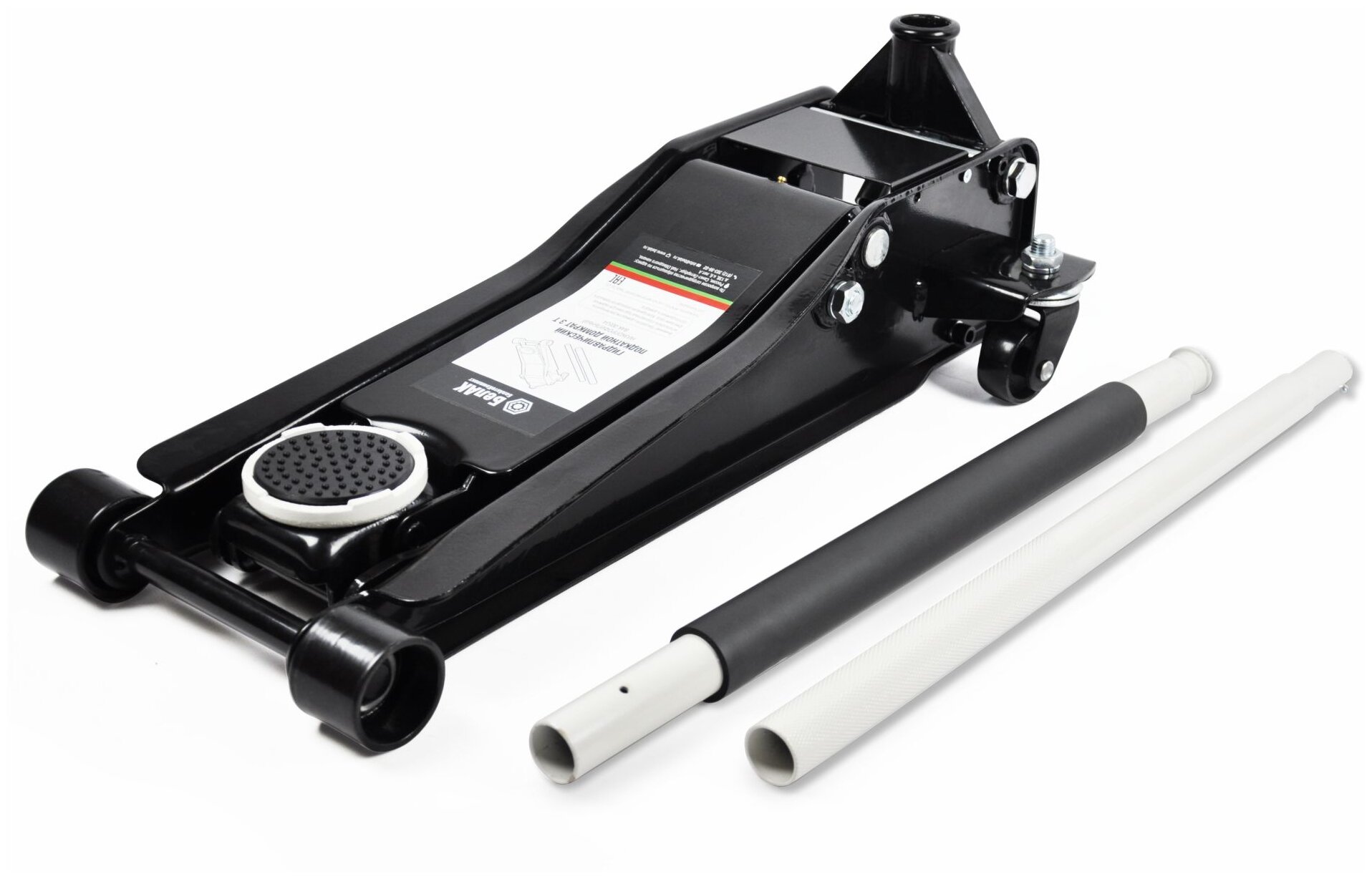 Домкрат подкатной низкопрофильный грузоподъёмностью 3 тонны () предназначен для поднятия автомобилей с небольшим клиренсом. Данное изделие прекрасно подходит для профессионального использования в шиномонтажных мастерских и ремонтной зоне автосервисов. Технические характеристики: Максимальная грузоподъёмность 3 тонны Высота подхвата мм 80 Высота подъёма мм 505 Привод клапана карданный Насос двойной Габаритная длина мм 700 Габаритная ширина мм 350 Длина рукоятки мм 1150 Диаметр чаши (внутр) мм 90 Масса изделия кг 32,5 Гарантия: 6 мес. Подробное описание низкопрофильного подкатного домкрата 3 ТОННЫ Данный подкатной домкрат предназначен, преимущественно, для профессионального использования в шиномонтажных мастерских и автосервисах. Благодаря заниженному профилю и большой высоте подъёма устройство подходит для работы с широким модельным рядом легковых автомобилей. В том числе и для автомобилей имеющих небольшой дорожный просвет. Таких как спортивные автомобили, суперкары люксовых брендов и так далее. Двойной масляный насос позволяет быстро осуществлять подъём транспортного средства и затрачивать минимум усилий на рычаге. Карданный привод основного клапана обеспечивает высокую точность открытия при опускании груза (что позволяет опускать транспортное средство очень плавно), высокую надёжность и долговечность устройства. Наличие дополнительного перепускного клапана обеспечивает защиту изделия от поломок при случайной перегрузке. Домкрат выполнен на тележке с поворотными задними колёсами что обеспечивает высокую степень мобильности устройства.