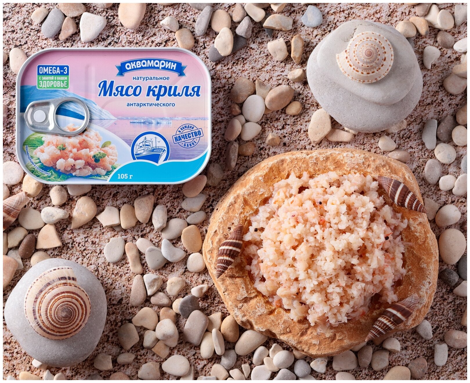 Изюминка ассортимента и эксклюзивный продукт — мясо криля (антарктической креветки), который известен непревзойденным вкусом и уникальными свойствами. Мясо криля – природный кладезь минеральных веществ, полиненасыщенных жирных кислот, витаминов и полезных нутриентов. Считается, что продукт стимулирует выработку гормонов/ферментов, нормализует метаболические и обменные процессы, укрепляет нервную систему, делает сердце здоровее, волосы длиннее, а улыбку шире.