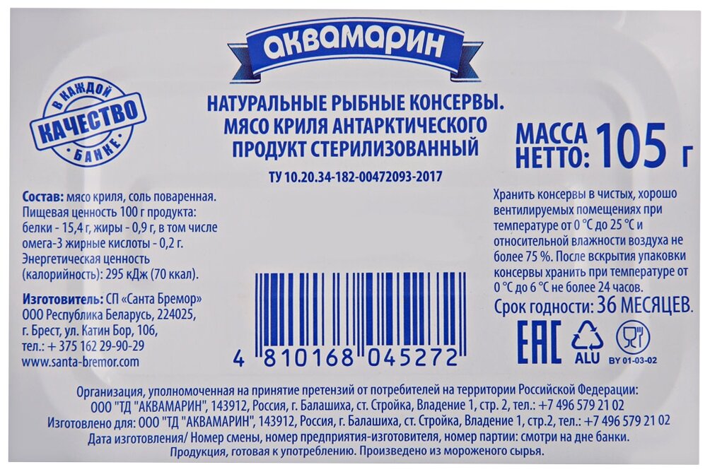 Мясо криля Санта Бремор Аквамарин 105г