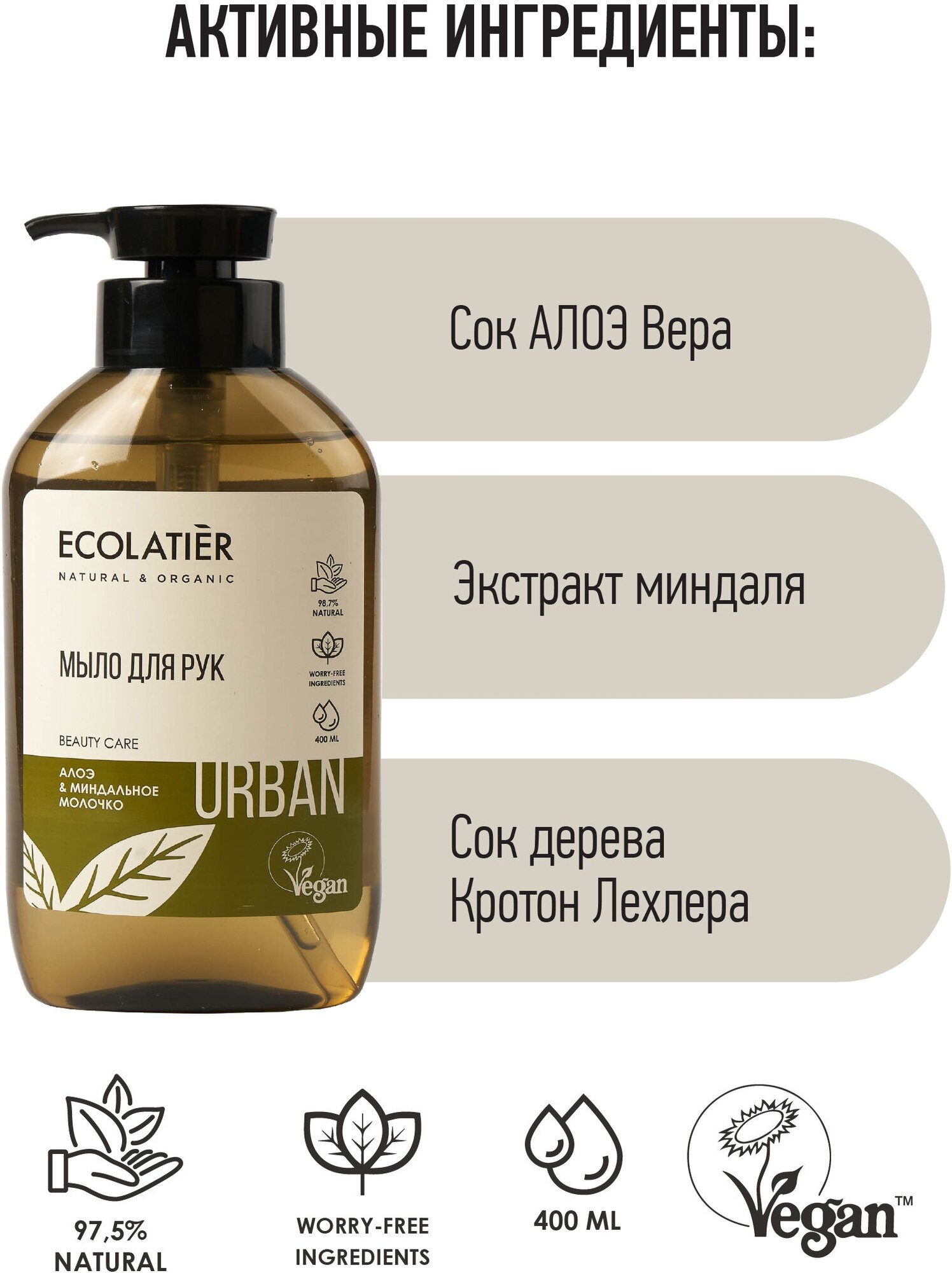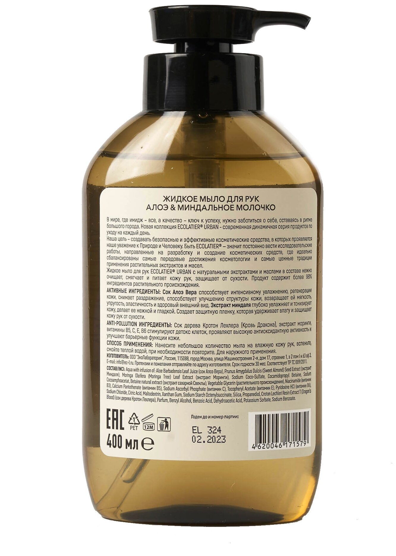 Жидкое мыло для рук Ecolatier Алоэ и Миндальное молочко 400мл ЭкоЛаборатория ООО