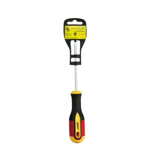 Шлицевая отвертка с трехкомпонентной рукояткой 0.8x4.0х100мм Энкор является простым в применении инструментом для монтажа и демонтажа винтовых соединений. Состоит из трехкомпонентной удобной рукоятки и хромванадиевого стержня, прочного и надежного в применении. Намагниченный наконечник позволяет работать с крепежом в труднодоступных местах.
