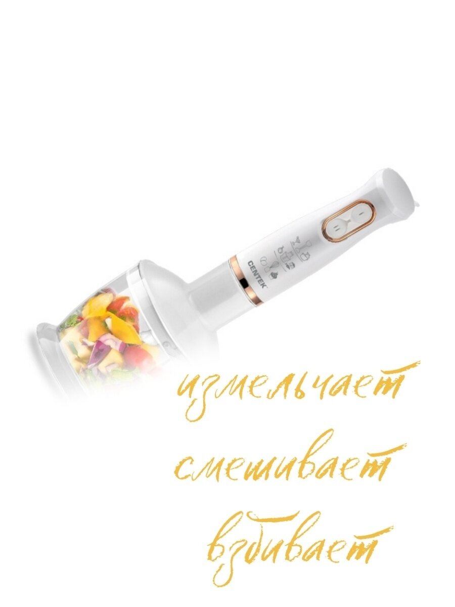 Погружной блендер Centek White/Gold — многофункциональная модель, которая поможет приготовить различные блюда.
