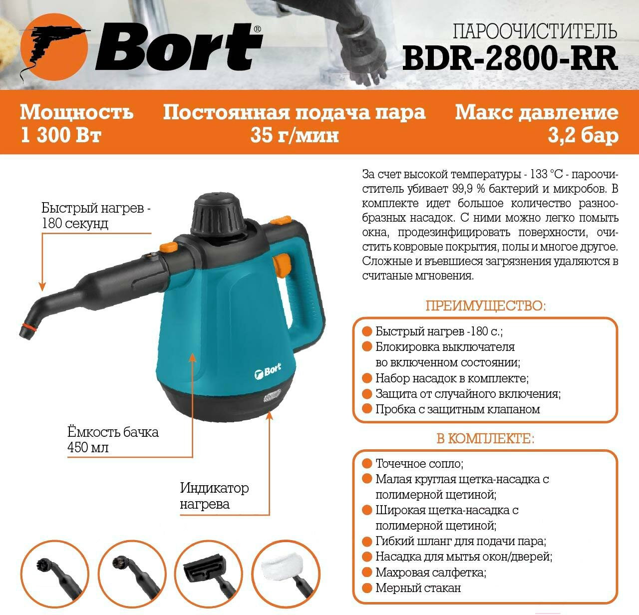 - Обзор пароочистителя Bort BDR 2800 RR