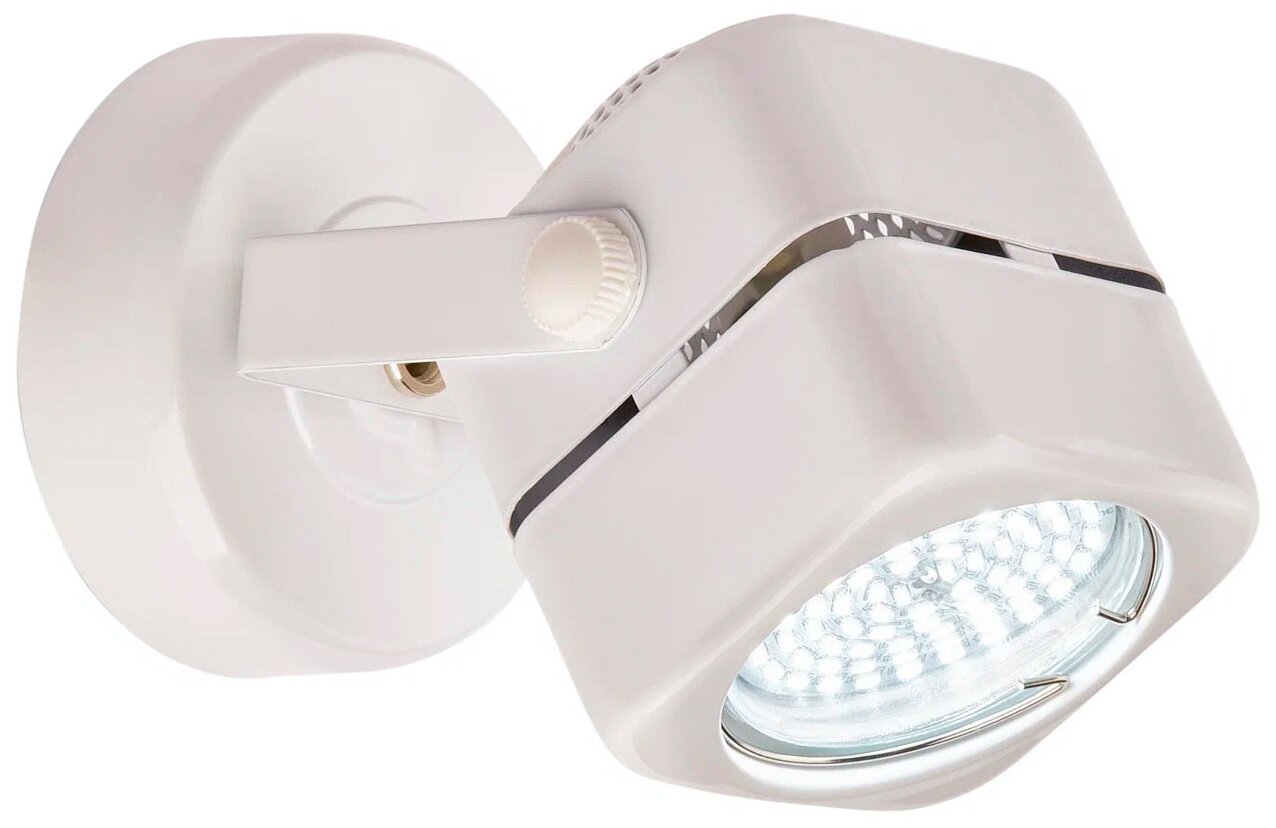 Светотехника от немецкой компании Imex – настоящая находка для всех любителей классического стиля и модерна. Светильники от этого бренда отличаются преобладанием в оформлении черт, характерных для указанных стилей, а также достойным качеством в сочетании с адекватной стоимостью. И сегодня мы хотим обратить ваше внимание на модель – превосходный спот, изготовленный немецкими мастерами. Для дизайна изделия характерна довольно спокойная цветовая гамма: в оформлении использован белый оттенок. Используется 1 лампочка с цоколем GU5.3, создающая освещение мощностью в 50 Вт. Этого хватает для подсветки участка размером до 4 кв.м. Форма и дизайн спота делают его идеальным для размещения на кухне, в гостиной или кафе: здесь он будет смотреться максимально уместно и гармонично. Приобретя данную модель, вы определенно останетесь довольны прекрасным качеством и аккуратностью исполнения каждой детали. Размеры светильника: высота – 14 см, диаметр – 5,7 см.