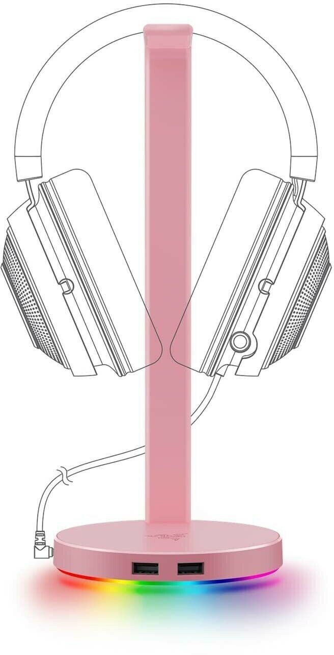 USB-концентратор на базе Razer Chroma RGB, который можно использовать как подставку для гарнитуры, с комбинированным разъемом 3,5 мм, поддерживающим объемный звук 7.1.