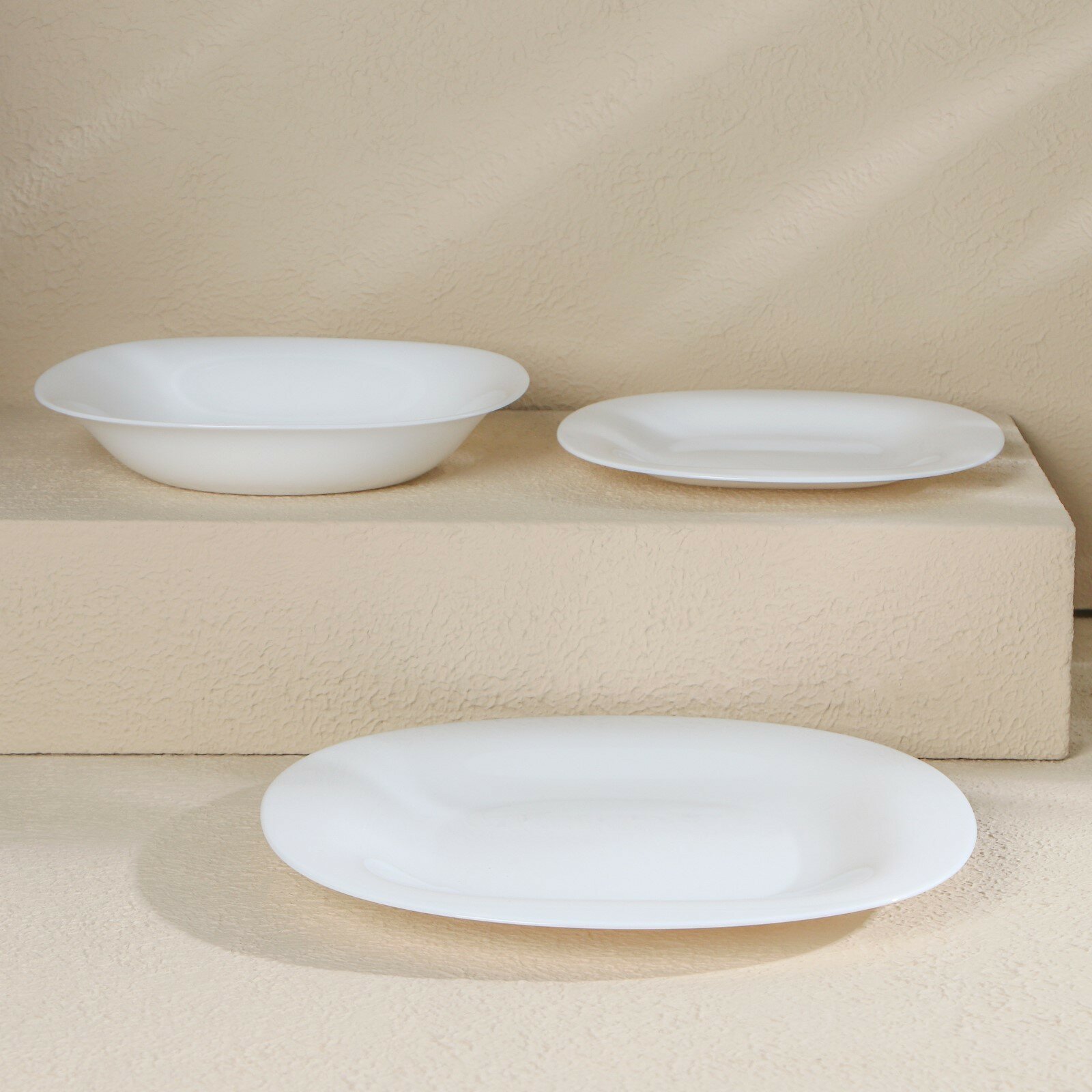 | Состав набора | Тарелка десертная 19,5см - 6шт; тарелка глубокая 21см - 6шт; тарелка обеденная 27см - 6шт. |