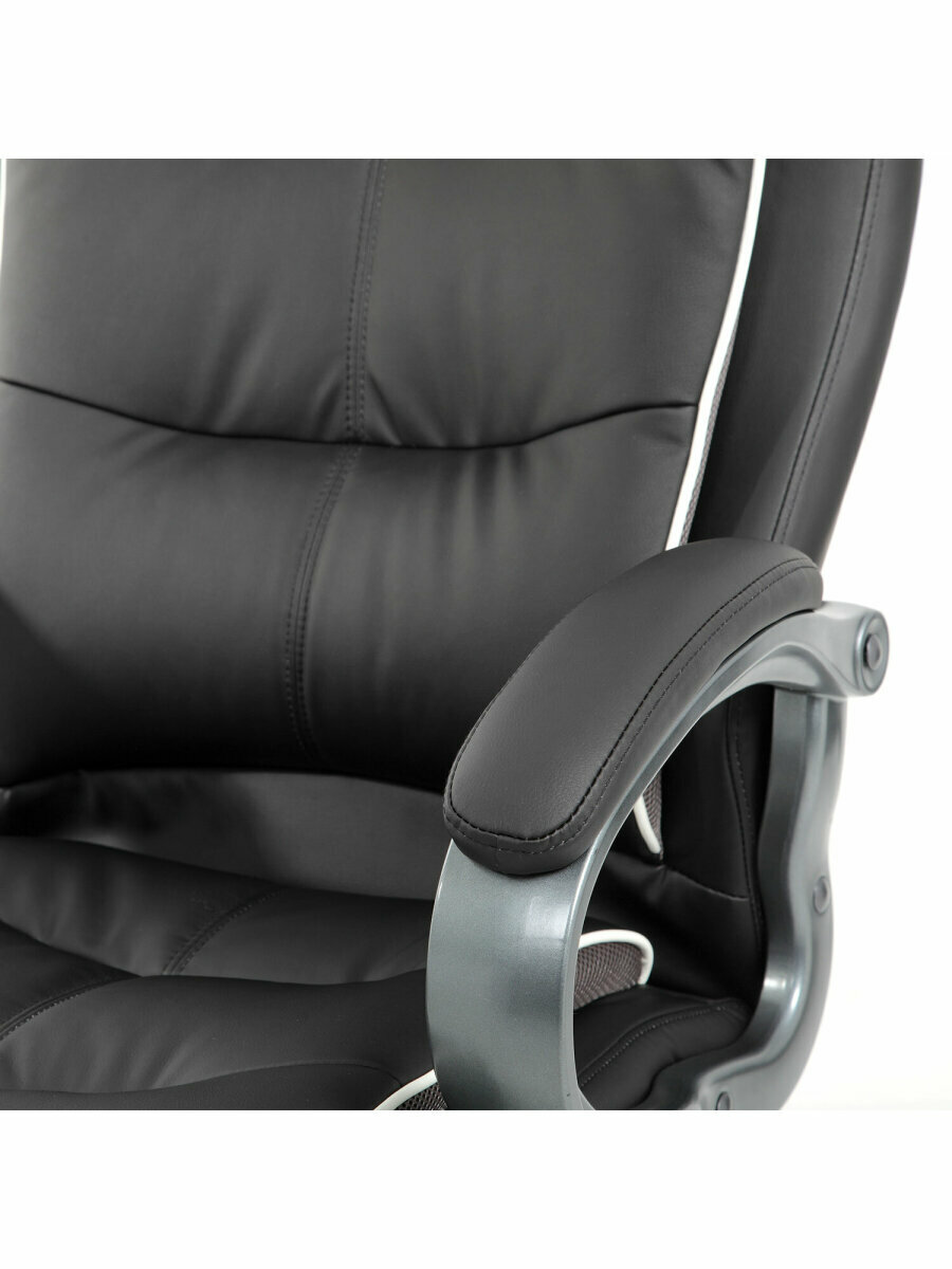 Обивка выполнена из экокожи высокого качества - современного материала на хлопковой основе. Благодаря тканой основе и пористому полиуретану экокожа отлично пропускает воздух, что положительным образом сказывается на комфорте во время эксплуатации. Материал износоустойчив - кресло сохранит привлекательный внешний вид в течение длительного времени.