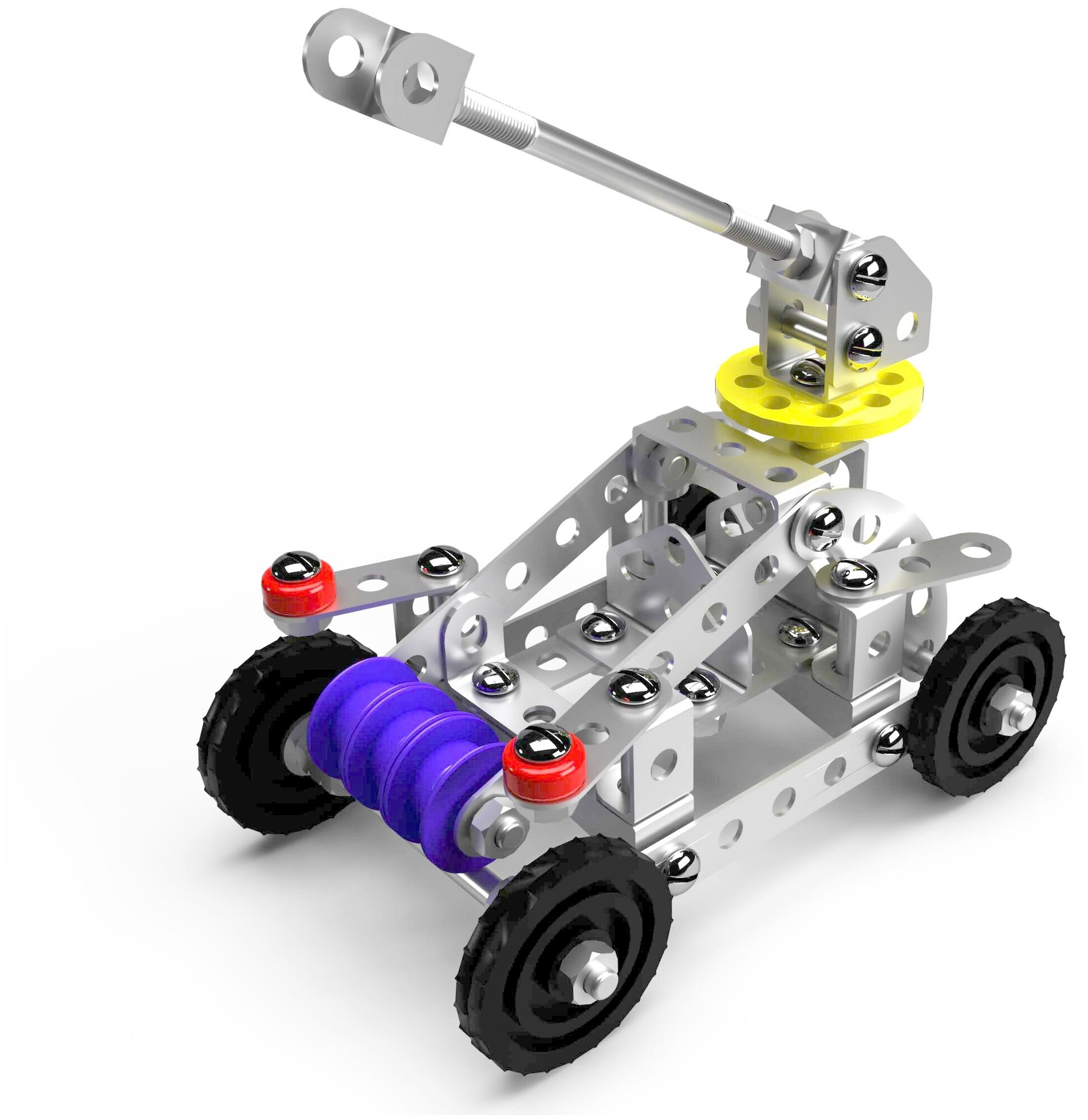 С помощью данного набора ребёнок может своими руками собрать игрушку-робота в двух вариантах – с ногами или на колёсах, а также модель зенитно-пулемётной установки. Все модели имеют подвижные элементы, благодаря чему могут служить игрушками для ребёнка уже после окончания процесса сборки.