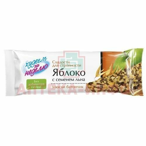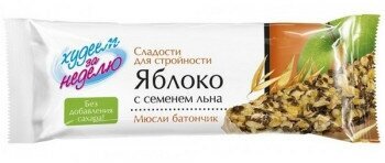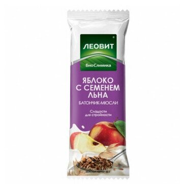 Батончик-мюсли Худеем за неделю с яблоком и семенами льна 30г Леовит