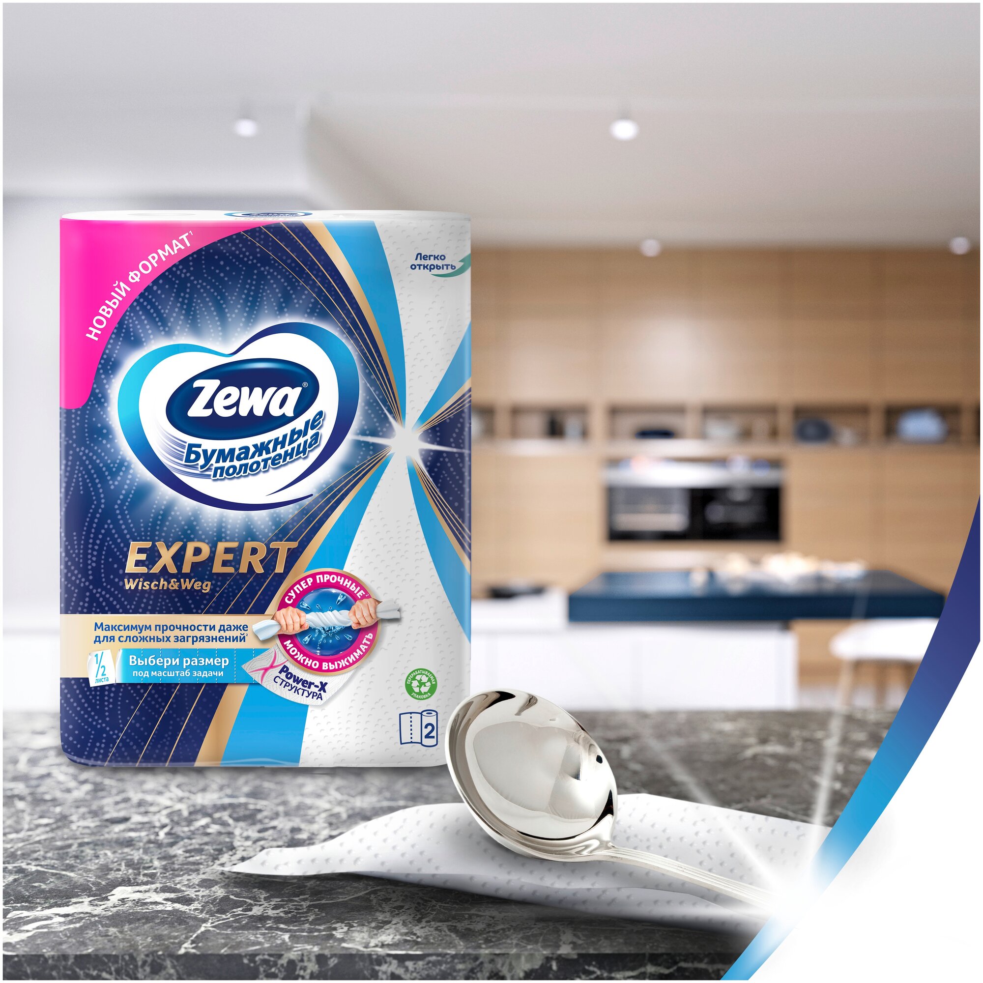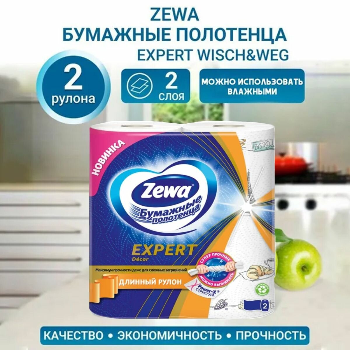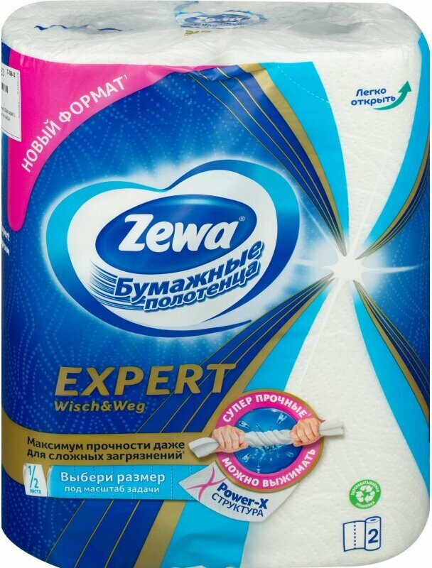 Благодаря особой уникальной технологии и тиснению Power- X бумажные полотенца Zewa Expert являются суперпрочными и могут справиться даже с самыми сложными задачами в быту: убрать за любимым домашним питомцем после прогулки или навести порядок и чистоту в доме после грандиозного семейного праздника. Влажная уборка - больше не проблема! Эти полотенца не порвутся, когда вы убираете лишнюю жидкость со стейков и рыбы или вытираете фрукты и овощи. Благодаря особой прочности бумажные полотенца Zewa Expert можно намочить, выжать и использовать влажными! Каждый лист перфорирован на две части, что позволяет выбрать нужный размер листа в зависимости от масштабов задачи. Новыми бумажными полотенцами удобно пользоваться, так как они рационально расходуются, а за счет высоты рулона лист больше, чем у обычных бумажных полотенец. Сейчас в ассортименте доступно 2 формата бумажных полотенец Zewa Expert: • красивые декорированные листы большого формата для устранения даже самых больших загрязнений • белые функциональные рулоны с перфорацией ? листа для рационального использования. Срок годности не ограничен.