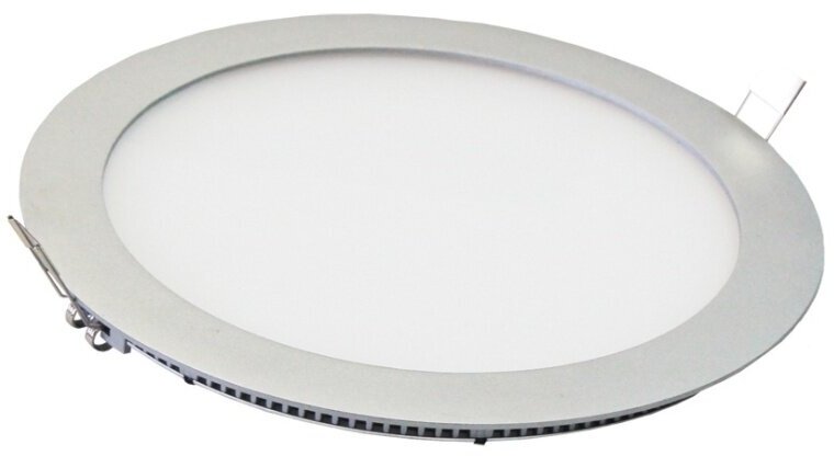 Применение Светильники предназначены для освещения коммерческой и жилой недвижимости. Конструкция Тонкий корпус светильника (18,5 мм) позволяет устанавливать его в помещениях с ограниченным потолочным пространством. Блок питания устанавливается отдельно от корпуса светильника (максимальное расстояние от светильника до блока питания – 1,5 м). Блок питания поставляется в комплекте. По периметру корпуса светильника располагается радиатор, что обеспечивает хороший теплоотвод и комфортный режим работы светодиода. Светильники поставляются: в двух цветовых исполнениях корпуса (белый и хром), в двух типоисполнениях: мощностью 12 Вт (внешний диаметр корпуса Ø170 мм, диаметр установочного отверстия Ø160 мм), мощностью 18 Вт (внешний диаметр корпуса Ø225 мм, диаметр установочного отверстия Ø205 мм), цветовой температуры 3000 К (теплый белый свет) и 4000 К (нейтральный белый свет).